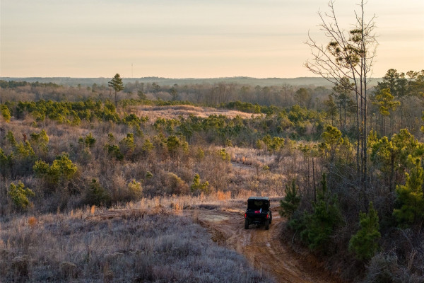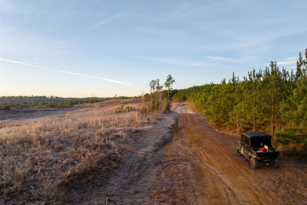 Two creeks flow through the property and appear to run year-round, adding beauty and providing water for wildlife. A well-developed internal road system gives access to nearly every part of the land. The gently rolling terrain creates a pleasant setting with long scenic views.