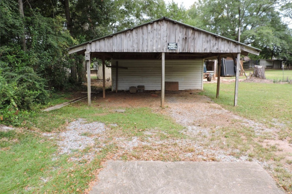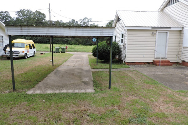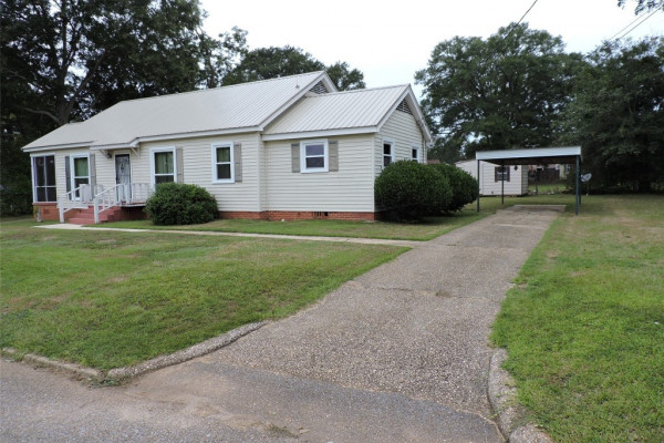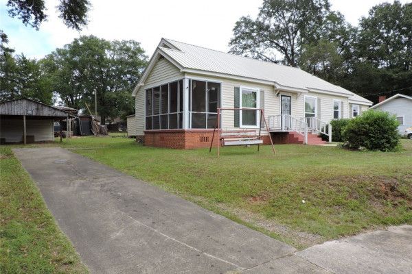 Older house with some significant updates. In 2025, all of the wood on the front stoop/deck was replaced, the screen on the screen porch was replaced, and the wiring and breaker boxes are currently in process of being replaced. A new metal roof was installed in June 2024. The roof has a transferable warranty that includes 5 years labor and 40 years on materials. All windows were professionally replaced in August 2024 and the windows have a warranty for the life of the house. Much of the plumbing was updated at the beginning of 2024. This house has 2 bedrooms, 1 bath, a living room, dining room, kitchen, laundry room, and den. The den could easily be a bedroom if a door was installed at the entrance to the den. The den has closet space and an exterior door. On the exterior, there is a small front stoop, a screen porch on the left side, and a concrete patio on the right rear of the house. On the left side of the house, there is a concrete drive/parking pad and a 2 car parking shed with an attached storage room. On the right side of the house, there is another concrete drive/parking pad with a 1 car awning carport at the end of the drive. The age of this house is unknown but estimated to have been built around 1950 +/-. A previous occupant of the house stated that the addition on the right side of the house was built in 1964. This house has a lot to see so call today to see this house.