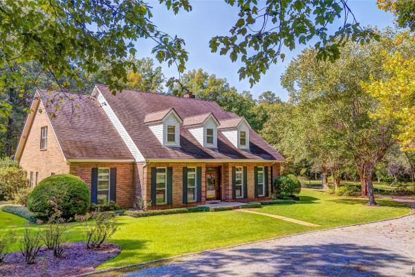 Nestled in the highly desirable Timberlane neighborhood in Pike Road, this gorgeous, custom built home sits on nearly 6 acres. The property sits on a peaceful one-mile loop, surrounded by trees in every direction.
