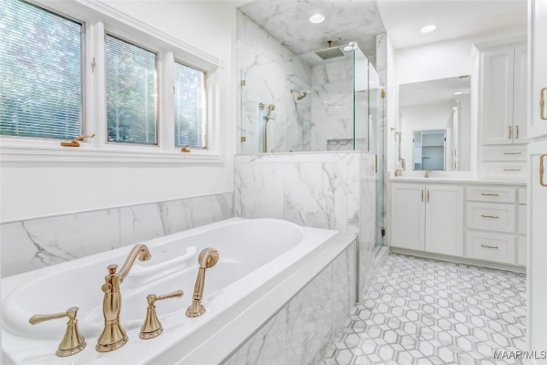 The downstairs features a spacious beautiful kitchen, a large airy sunroom, a cozy den, a formal dining room, a study, a guest room with ensuite bath, a laundry room, and a master suite with a renovated bathroom and closet system. The master bath has a multi head shower and an air jetted tub. The downstairs features new hardwood flooring through the common areas and new carpet in the bedrooms.