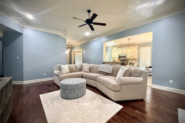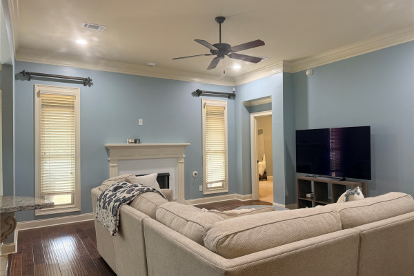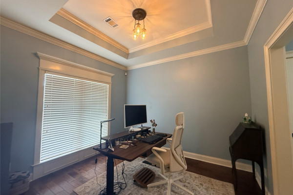 This beautifully maintained 4-bedroom 2 Bath home offers the space, comfort, and amenities renters love. Enjoy crown molding throughout, tray ceilings, hardwood floors, a fully fenced yard, and a jetted garden tub in the main suite. The smart sound and lighting system lets you control lights with a single touch, and energy-efficient upgrades like spray-foam insulation and a Wi-Fi thermostat help keep utility costs low. 2-Car attached Garage will keep your cars safe from the elements. Outside enjoy a covered patio and a Privacy Fenced Back-Yard