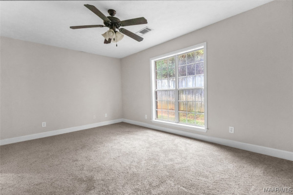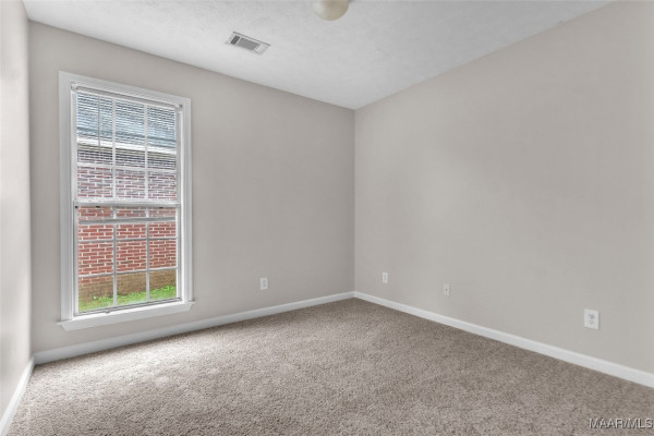 Move-in ready 3 bedroom, 2 bath patio home in Millbrook, Alabama offering 1,361 square feet of low-maintenance living. Built in 2005 and owned by only three owners, this home features fresh paint throughout and brand-new carpet in all bedrooms and closets, along with beautiful dark wood flooring in the main living area. The open floor plan includes a spacious living room and a functional kitchen with ample cabinetry and a convenient pass-through to the dining space. The split-bedroom layout provides added privacy, with a primary suite featuring a double vanity, soaking tub, separate shower, and walk-in closet. Enjoy a private patio and fenced backyard, ideal for relaxing or entertaining. Conveniently located near Maxwell Air Force Base, Montgomery, Prattville, and Wetumpka, this home is perfect for first-time buyers, downsizing, or an investment property.