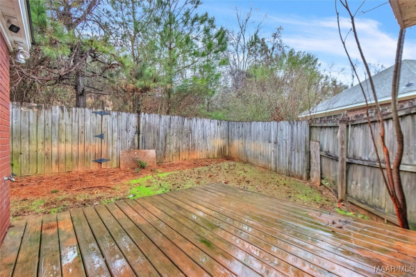 Move-in ready 3 bedroom, 2 bath patio home in Millbrook, Alabama offering 1,361 square feet of low-maintenance living. Built in 2005 and owned by only three owners, this home features fresh paint throughout and brand-new carpet in all bedrooms and closets, along with beautiful dark wood flooring in the main living area. The open floor plan includes a spacious living room and a functional kitchen with ample cabinetry and a convenient pass-through to the dining space. The split-bedroom layout provides added privacy, with a primary suite featuring a double vanity, soaking tub, separate shower, and walk-in closet. Enjoy a private patio and fenced backyard, ideal for relaxing or entertaining. Conveniently located near Maxwell Air Force Base, Montgomery, Prattville, and Wetumpka, this home is perfect for first-time buyers, downsizing, or an investment property.