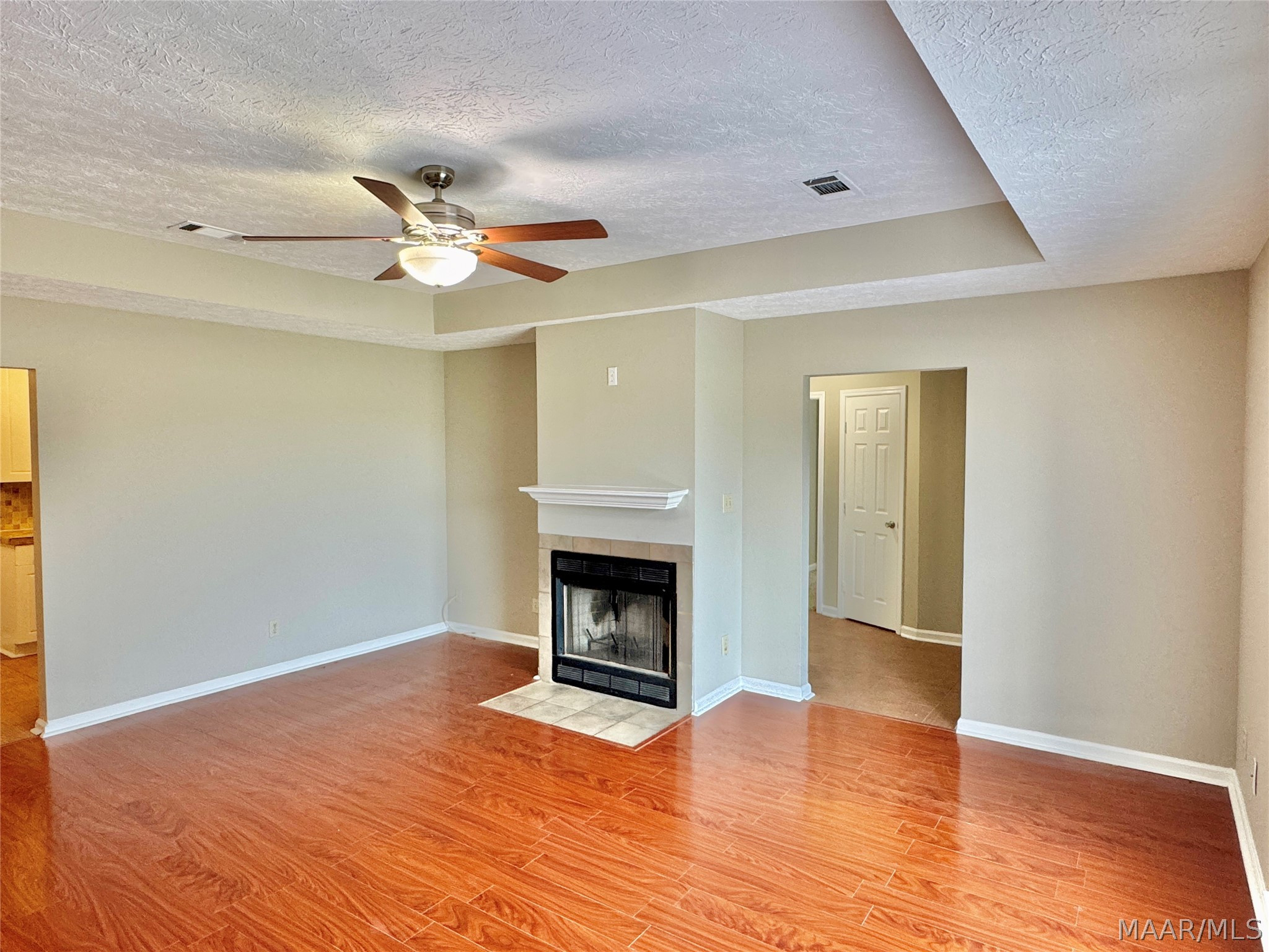 With tiled entrance, hardwood floors, cozy fireplace and trey ceiling will leave you delighted.