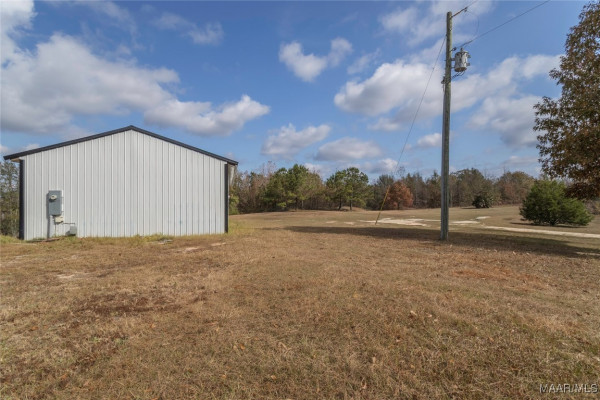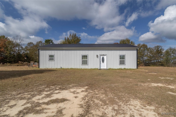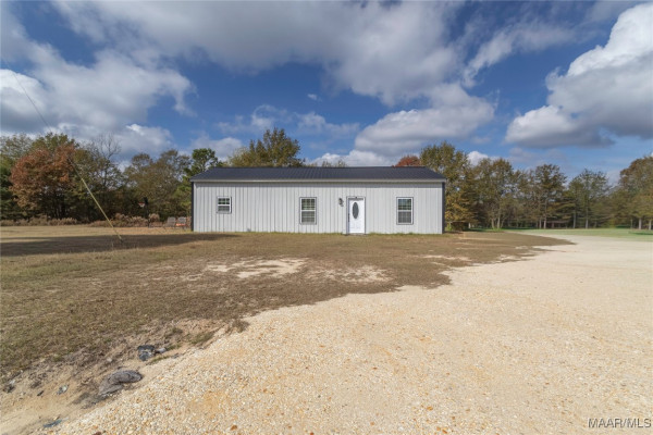 Welcome home to cozy country living with modern comfort and charm! This beautiful 2022-built barndominium is the perfect blend of style, warmth, and functionality—sitting proudly on 5 serene acres in the highly sought-after Highland Home school zone. Designed from custom house plans, this 3 bed, 2 bath, 1,152 sq ft home feels bright, welcoming, and thoughtfully crafted. Enjoy the durability of LVP flooring throughout, 2×6 exterior walls, and 2×4 interior walls, giving the home a solid and comfortable feel. Step into the inviting kitchen, complete with custom-stained cabinets, butcher block countertops, a farmhouse stainless sink, and stainless appliances including a convection oven—perfect for cooking, gathering, and making memories. Both bathrooms feature granite countertops, marble shower/tub surrounds, and custom tile floors, adding a touch of everyday luxury. Comfort upgrades like remote-controlled fans, a wireless Bluetooth speaker fan in the primary bedroom, and a WiFi thermostat make the home feel modern and effortless. Outside is where the property truly shines. The home sits on a gentle hill offering peaceful views, yet still gives you a large, flat yard—ideal for future storage buildings, workshops, gardens, or anything you want to add to make it uniquely yours. The gravel driveway provides a charming country welcome every time you come home, and the abundant wildlife around the property adds to the quiet, relaxing atmosphere. All this beauty and privacy—while still being less than 45 minutes from Montgomery. If you’ve been searching for a place that feels like home the moment you arrive, this is it. Don’t miss out on this inviting slice of country living!