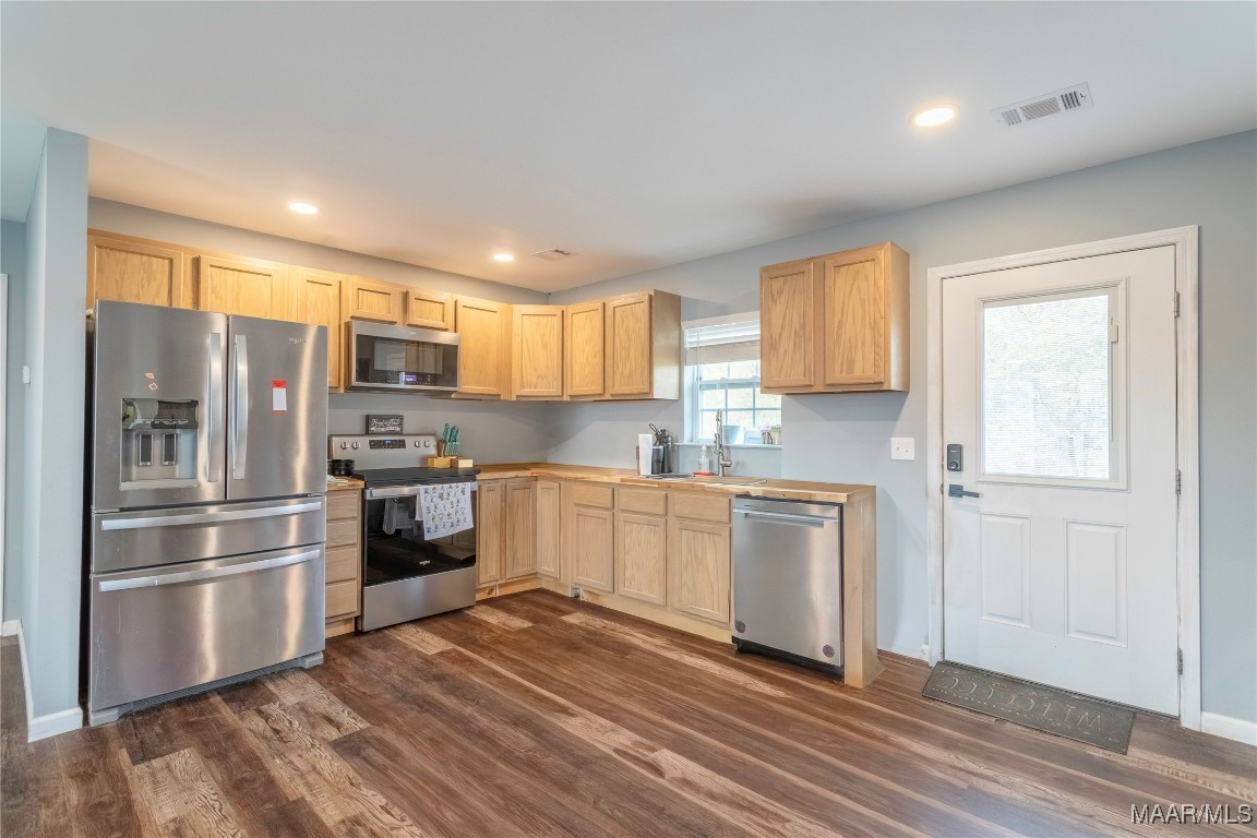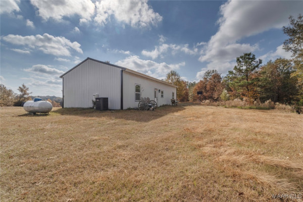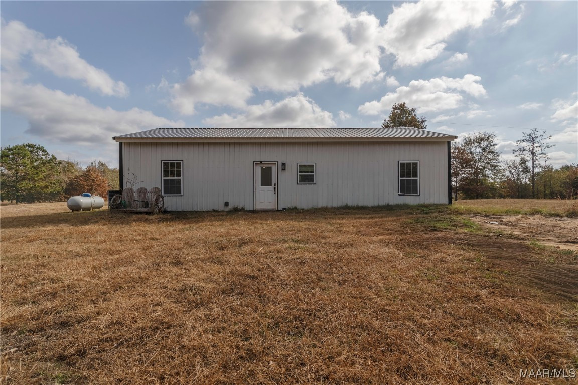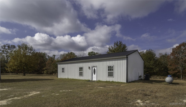 Welcome home to cozy country living with modern comfort and charm! This beautiful 2022-built barndominium is the perfect blend of style, warmth, and functionality—sitting proudly on 5 serene acres in the highly sought-after Highland Home school zone. Designed from custom house plans, this 3 bed, 2 bath, 1,152 sq ft home feels bright, welcoming, and thoughtfully crafted. Enjoy the durability of LVP flooring throughout, 2×6 exterior walls, and 2×4 interior walls, giving the home a solid and comfortable feel. Step into the inviting kitchen, complete with custom-stained cabinets, butcher block countertops, a farmhouse stainless sink, and stainless appliances including a convection oven—perfect for cooking, gathering, and making memories. Both bathrooms feature granite countertops, marble shower/tub surrounds, and custom tile floors, adding a touch of everyday luxury. Comfort upgrades like remote-controlled fans, a wireless Bluetooth speaker fan in the primary bedroom, and a WiFi thermostat make the home feel modern and effortless. Outside is where the property truly shines. The home sits on a gentle hill offering peaceful views, yet still gives you a large, flat yard—ideal for future storage buildings, workshops, gardens, or anything you want to add to make it uniquely yours. The gravel driveway provides a charming country welcome every time you come home, and the abundant wildlife around the property adds to the quiet, relaxing atmosphere. All this beauty and privacy—while still being less than 45 minutes from Montgomery. If you’ve been searching for a place that feels like home the moment you arrive, this is it. Don’t miss out on this inviting slice of country living!