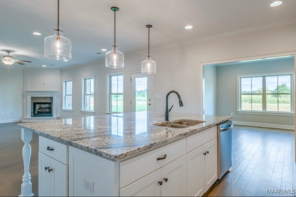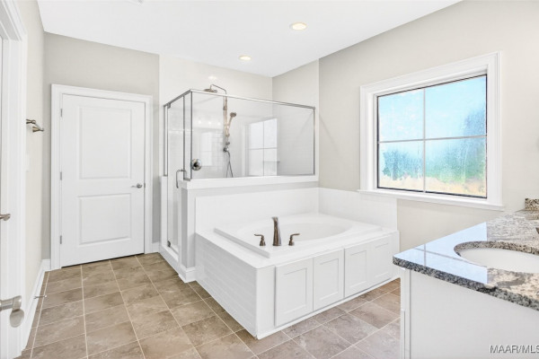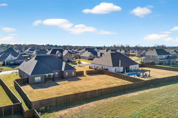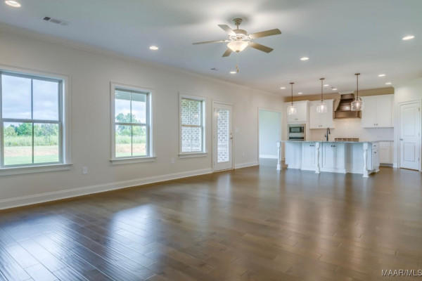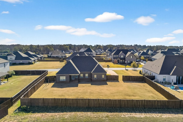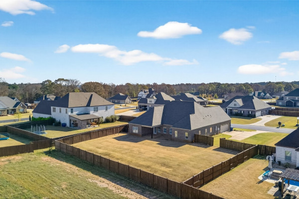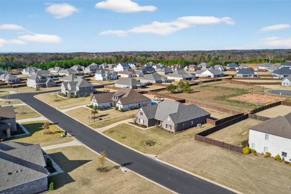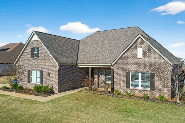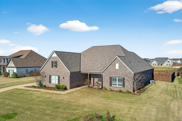 The welcoming feel starts on the covered front porch and carries through the long foyer entryway that leads you into a vast great room. The corner fireplace will immediately catch your eye, but the sprawling hardwoods and wall of windows will secure your admiration for this space. Off to one side you’ll find a large kitchen with a center island, great working triangle, and large pantry. You enter the flex room from the back of the kitchen that would serve perfectly as a dining room or study, depending on your family’s needs. The master suite occupies one side of the main level and has a lot to offer including an adjoining sitting room, flawless master bath, and spacious walk in closet. The three additional bedrooms and two full bathrooms are found off of the main entryway and each have a large walk-in closet plus a linen closet in the hall. Hidden gems of this home are a mudroom adjacent to the laundry room, entered from the side-entry garage or foyer, and a covered patio at the rear.