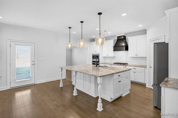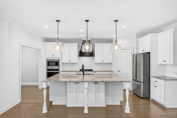 The welcoming feel starts on the covered front porch and carries through the long foyer entryway that leads you into a vast great room. The corner fireplace will immediately catch your eye, but the sprawling hardwoods and wall of windows will secure your admiration for this space. Off to one side you’ll find a large kitchen with a center island, great working triangle, and large pantry. You enter the flex room from the back of the kitchen that would serve perfectly as a dining room or study, depending on your family’s needs. The master suite occupies one side of the main level and has a lot to offer including an adjoining sitting room, flawless master bath, and spacious walk in closet. The three additional bedrooms and two full bathrooms are found off of the main entryway and each have a large walk-in closet plus a linen closet in the hall. Hidden gems of this home are a mudroom adjacent to the laundry room, entered from the side-entry garage or foyer, and a covered patio at the rear.