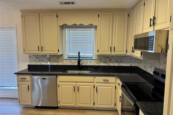 The kitchen is completely new, with granite countertops, brand-new appliances, and plenty of space for cooking and gathering.