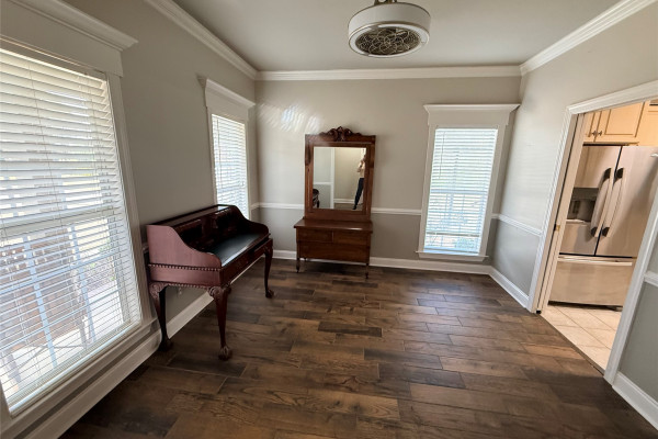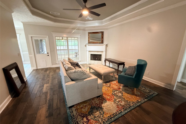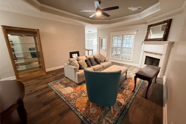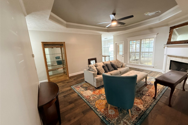 For Rent * $2000 per month * Available June 1, 2026 * Beautiful home located in the desirable neighborhood of Windrose. This home is situated on a large 1/2 acre corner lot, featuring 3 bedrooms, 2 baths, crown molding throughout, trey ceilings, gas fireplace, alarm system, oversized screened in back porch, fully fenced backyard, hardwood tiles in the living and dining room, and eve lights on the outside of the house to light it up at night! As you walk through the front door and into the foyer, you can’t help but notice the fancy trey ceiling, catty cornered fireplace, and dressed up window casings. The dining room is to your left and opens to the kitchen and eat-in kitchen nook. The kitchen has a breakfast bar, a new stainless steel Samsung Smart gas oven, and a separate pantry closet. You’ll love the walk-in laundry room and extra storage/2nd walk-in pantry across from the laundry room. All the bedrooms are located on the opposite side of the kitchen. The master bedroom has trey ceilings and a large master bath. The master bath has a separate walk-in shower with a seat, a garden tub, double sink vanity, and two separate walk-in closets. Down the hall is the second bathroom with a double sink vanity and tub/shower combo. And the other two bedrooms are specious. There is a wired detached garage with 2 separate dedicated 20 amp circuits. No Smoking. Pets Negotiable. Managed by ALM Properties.