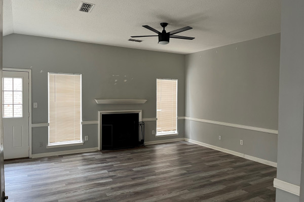 The property includes LVP flooring throughout the main living areas and a fully fenced backyard that provides space for outdoor activities, pets, or gardening. A separate outdoor storage area adds additional convenience for tools and lawn equipment. The home is also located just a short walk from a nearby park, making it easy to enjoy outdoor recreation.