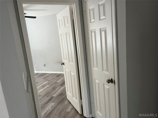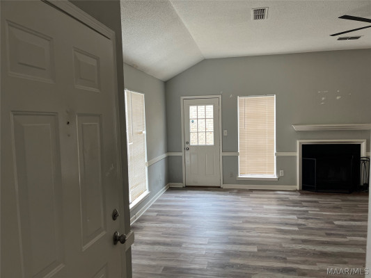 The property includes LVP flooring throughout the main living areas and a fully fenced backyard that provides space for outdoor activities, pets, or gardening. A separate outdoor storage area adds additional convenience for tools and lawn equipment. The home is also located just a short walk from a nearby park, making it easy to enjoy outdoor recreation.