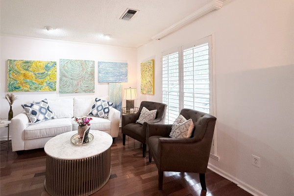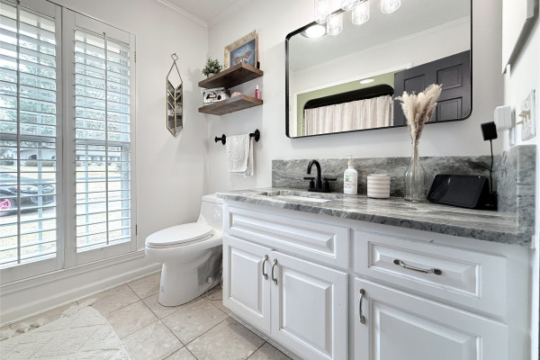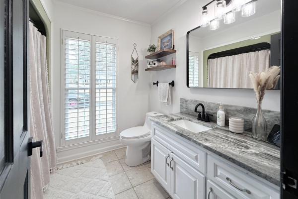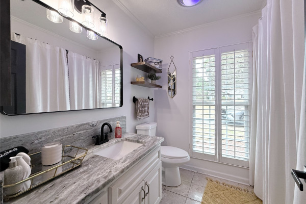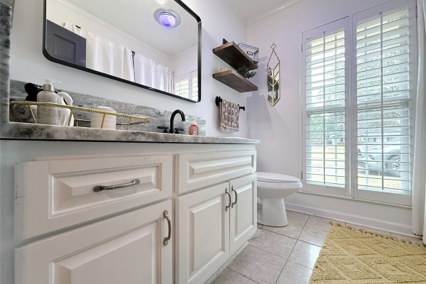 Throughout the home, you’ll find plantation shutters, fresh interior paint, new windows, and updated lighting that give the home a crisp, modern feel while maintaining its classic character. Both bathrooms have been refreshed with updated sinks, countertops, lighting, and mirrors.