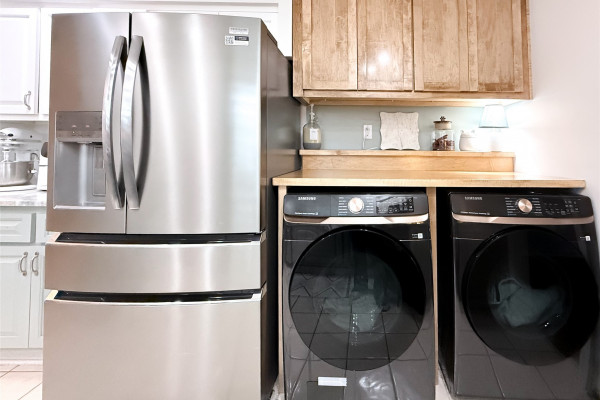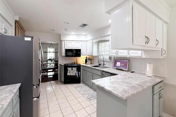 The kitchen has been tastefully updated with new granite countertops, a stylish backsplash, double sink, and improved functionality that makes both cooking and hosting a breeze. Nearby, the laundry room has been upgraded with custom cabinetry and countertop space for added convenience and storage.