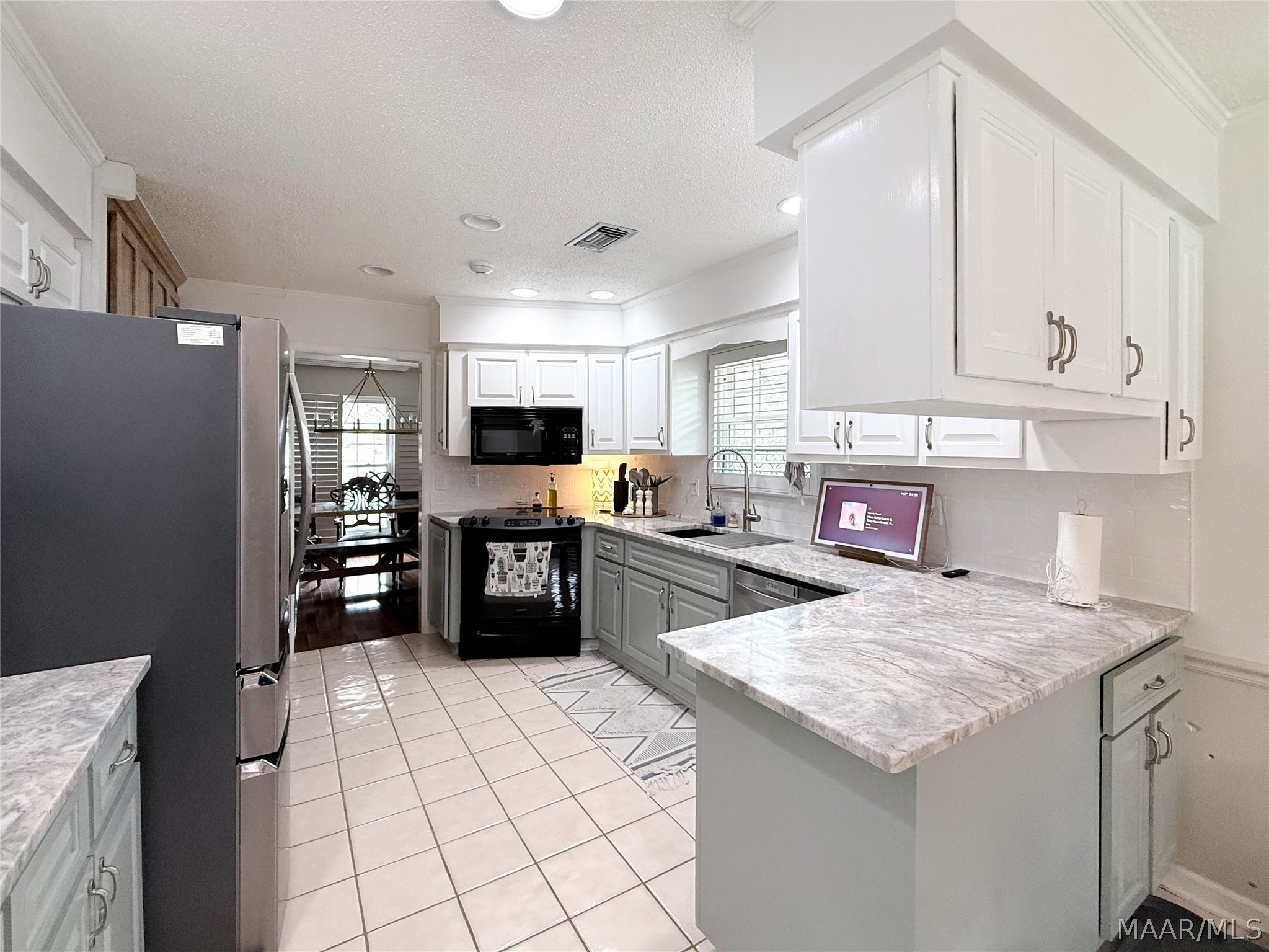 The kitchen has been tastefully updated with new granite countertops, a stylish backsplash, double sink, and improved functionality that makes both cooking and hosting a breeze. Nearby, the laundry room has been upgraded with custom cabinetry and countertop space for added convenience and storage.