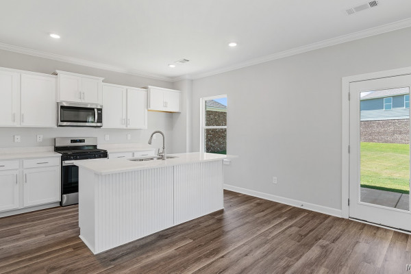 Welcome to 6044 Cunningham Trail, our Penwell floorplan featured in our beautiful Lanes Landing Community in Montgomery, Alabama. This two-story home offers a practical design with 4 bedrooms and 2.5 bathrooms with over 2,100 square feet. As you enter the home, you are greeted by the foyer, the flex space, and have convenient access to the powder room. Moving further you are welcomed into our open-concept kitchen, dining, and living space, ideal for hosting guests. This stunning kitchen features elegant shaker style cabinetry, quartz countertops, stainless steel appliances, a spacious pantry, and an island. The spacious living area includes easy access to the covered patio. Moving upstairs you’ll find all the bedrooms including the primary suite and laundry room. Our primary bedroom serves as a private retreat with a bathroom featuring a separate shower, a garden tub, double vanity with quartz countertops, private water closet, and a large walk-in closet. Like all homes in Lanes Landing, the Penwell includes a Home is Connected smart home technology package which allows you to control your home with your smart device while near or away. Pictures may be of a similar home and not necessarily of the subject property. Pictures are representational only. Call one of our New Home Specialists today to schedule your tour!