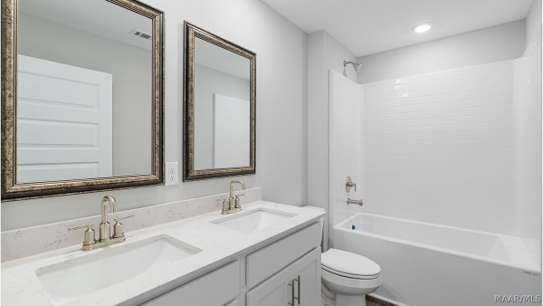 Welcome to 6044 Cunningham Trail, our Penwell floorplan featured in our beautiful Lanes Landing Community in Montgomery, Alabama. This two-story home offers a practical design with 4 bedrooms and 2.5 bathrooms with over 2,100 square feet. As you enter the home, you are greeted by the foyer, the flex space, and have convenient access to the powder room. Moving further you are welcomed into our open-concept kitchen, dining, and living space, ideal for hosting guests. This stunning kitchen features elegant shaker style cabinetry, quartz countertops, stainless steel appliances, a spacious pantry, and an island. The spacious living area includes easy access to the covered patio. Moving upstairs you’ll find all the bedrooms including the primary suite and laundry room. Our primary bedroom serves as a private retreat with a bathroom featuring a separate shower, a garden tub, double vanity with quartz countertops, private water closet, and a large walk-in closet. Like all homes in Lanes Landing, the Penwell includes a Home is Connected smart home technology package which allows you to control your home with your smart device while near or away. Pictures may be of a similar home and not necessarily of the subject property. Pictures are representational only. Call one of our New Home Specialists today to schedule your tour!