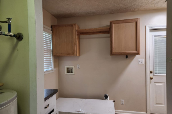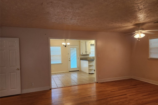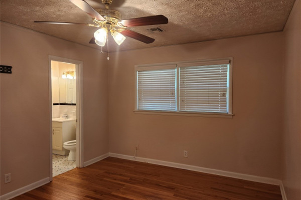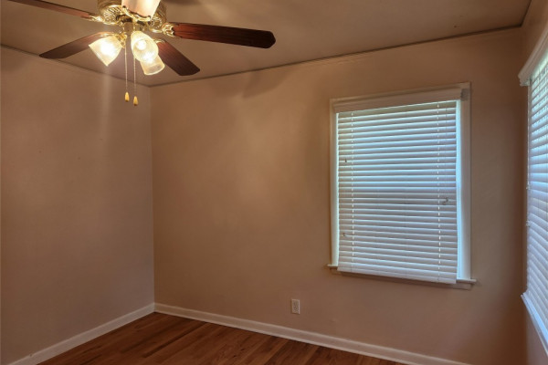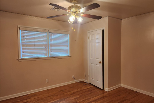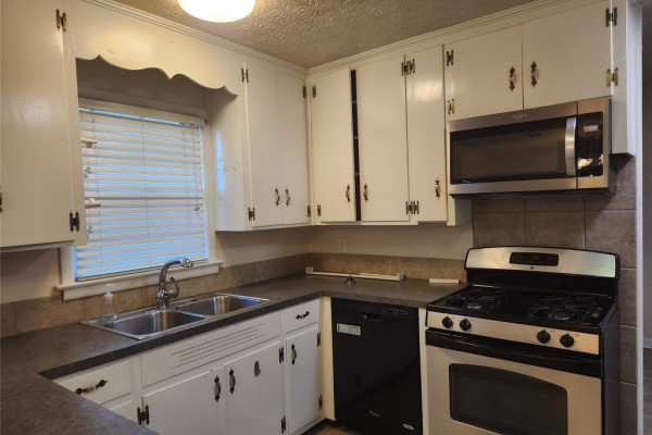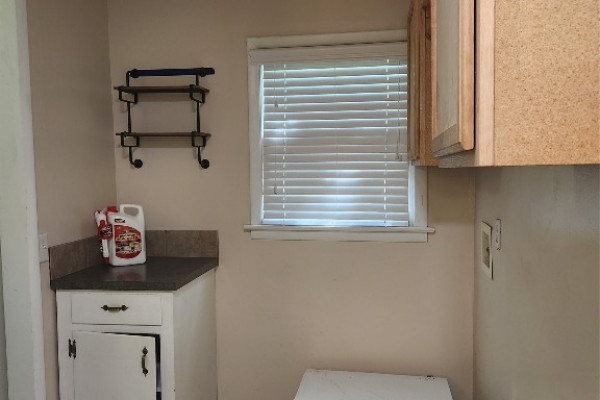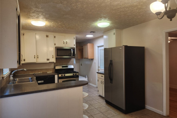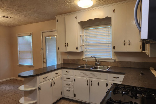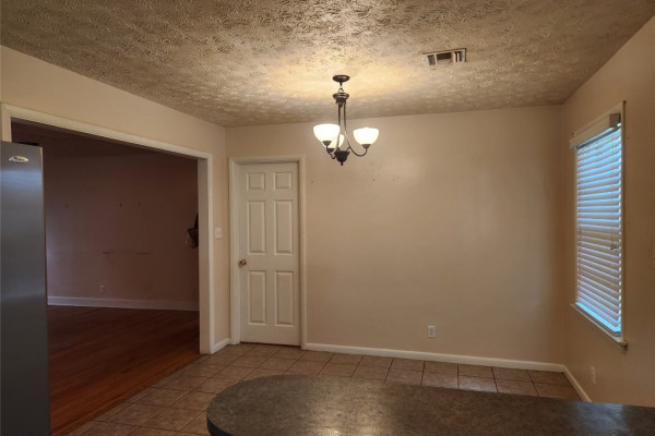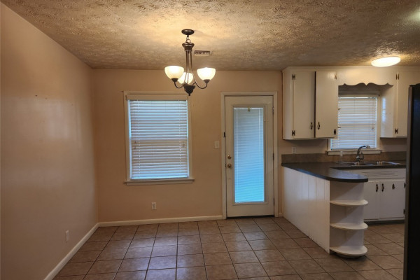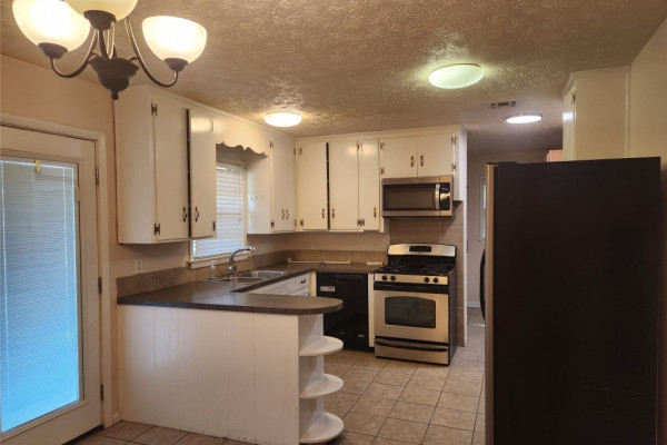Available December 1, 2025 – This 3 bedroom, 1.5 bath home offers a living room, dining room combination just inside the front door area. The kitchen sits off the breakfast area and has a gas stove, refrigerator, microwave and dishwasher included. The laundry area has cabinets for storage and there is a utility room behind that houses the water heater and accesses the back yard. Down the hall are the 3 bedrooms. The first on the right has a door from the hallway, but also one leading back in to the breakfast area. There is another bedroom behind this one and the one across the hall has an attached half bath with additional closet. This half bath also connects to the hall bath as well.