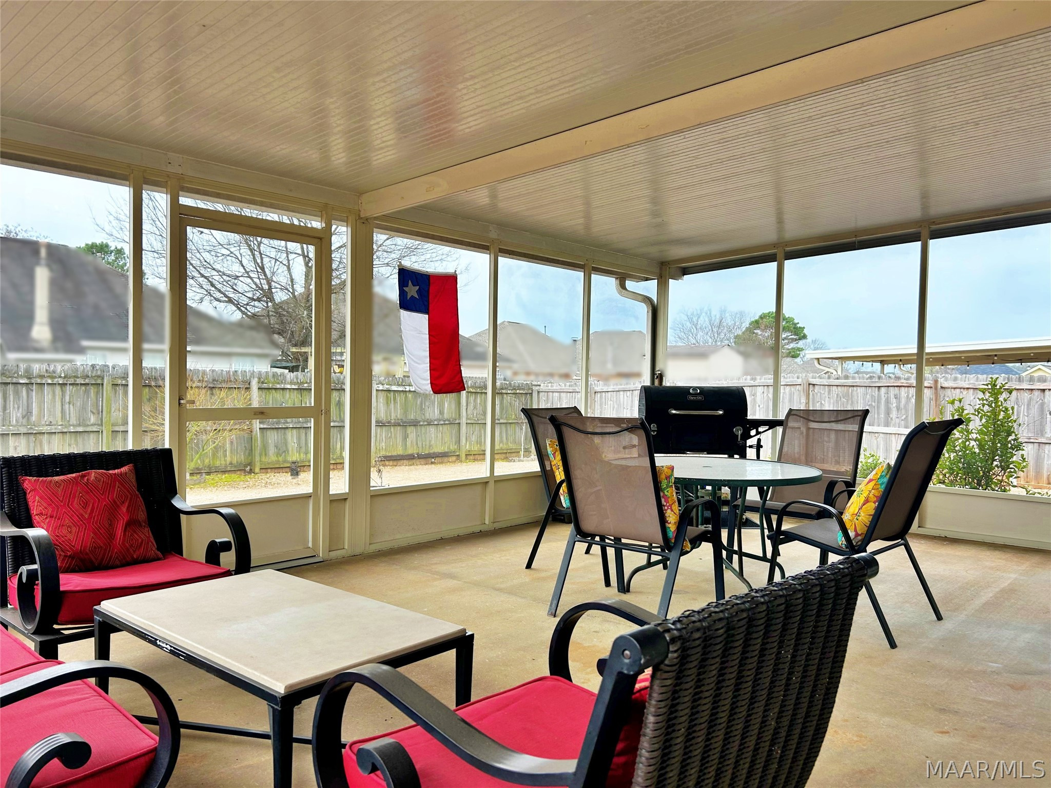 Three bedroom, two bath house in highly requested Brookstone neighborhood. Close to Maxwell, Gunter, Interstate, shops, restaurants, and schools This house has been a rental for military officers at Maxwell (mostly International) and would make a great continued investment or a personal home. It can be sold with most furnishings. This open floor plan features laminate/wood flooring that is approximately 2 years old, lots of kitchen cabinets, plenty of countertop space, a pantry, separate dining space that is open to the kitchen and living area. Living room has a fireplace Both refrigerators, washer, and dryer will remain. The split floor plan has two secondary bedrooms that share a nice sized bathroom. Spacious primary suite with two closets (1 a walk in) and a big corner tiled shower. What makes this home truly unique is the enclosed space off the back and a HUGE screened in porch overlooking the privacy fenced yard. Roof is appx 3 years old and HVAC is 2 years old CAN BE VIEWED BY APPT ONLY WITH A 24 HOUR MIN NOTICE. SHOWINGS ARE LIMITED TO 30 MIN