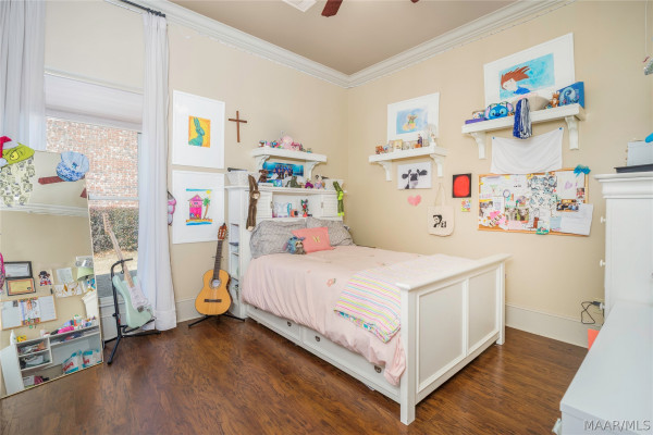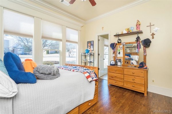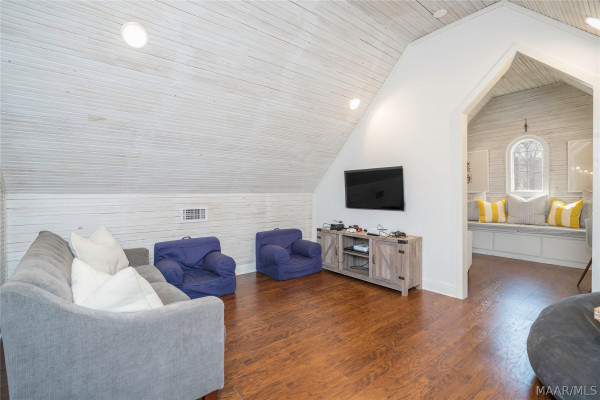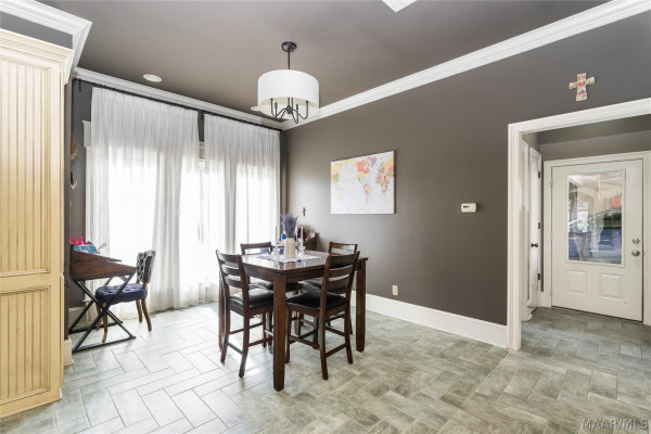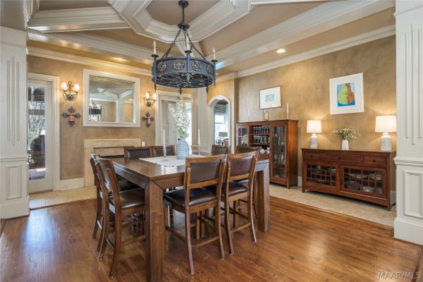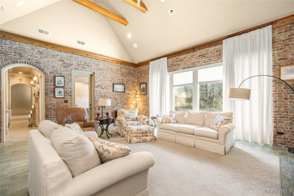 Welcome home to this stunning 5-bedroom, 3 full and 1 half bath that perfectly blends elegance, comfort, and thoughtful design. The formal dining or living room features a fireplace and beamed ceiling, while the gourmet kitchen boasts an oversized island, walk-in pantry, upgraded appliances, and large breakfast room. A dedicated mudroom adds more storage space & convenience. The spacious great/family room showcases vaulted ceilings, fireplace, built-ins, and views of the pool and water. The main level offers two secondary bedrooms sharing a bath with separate vanities, plus a primary suite with serene views, oversized five-piece bath, with abundant built-ins, and two generous sized walk-in closets. Upstairs, enjoy a flexible landing area perfect for a reading nook or office, a bedroom with built-in desks for a home office, another bedroom with an ensuite bath (also accessible from the hall), and a large bonus room with tongue-and-groove beadboard walls and ceiling. Step outside to your private oasis with covered & uncovered patio space, an in-ground pool & hot tub, water and wooded views, and a fully fenced yard. Extensive millwork, graceful archways, and zero carpet with a beautiful mix of wood & tile flooring highlight the home’s craftsmanship. Additional features include four water heaters for maximum comfort, two of three HVAC systems (2014), and a roof replaced in 2020. Conveniently located close to all areas of Montgomery, yet tucked away in a best-kept-secret neighborhood—just 10 minutes to EastChase and 3 minutes to I-85.