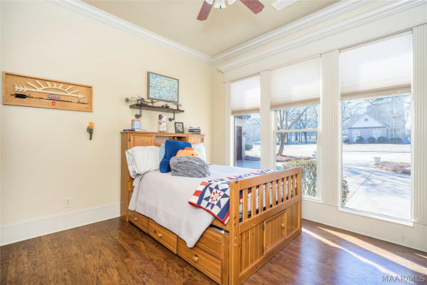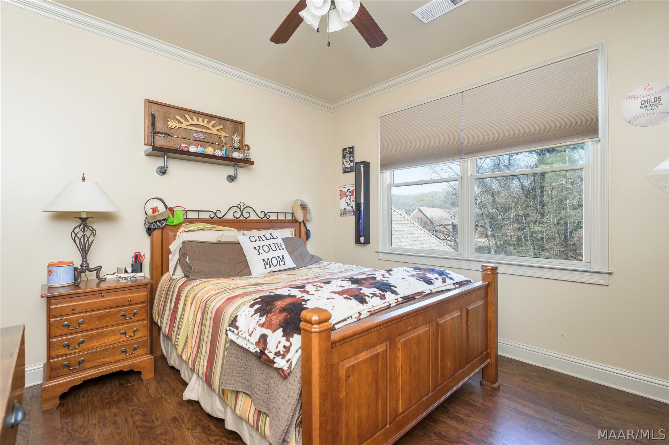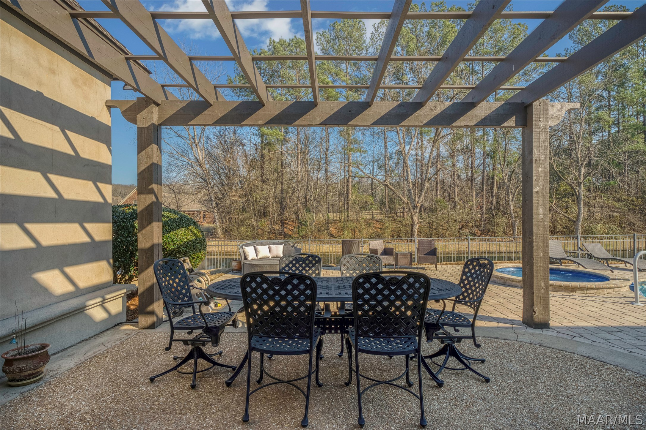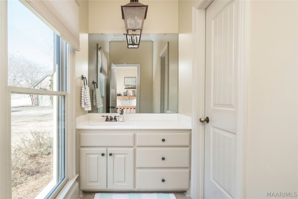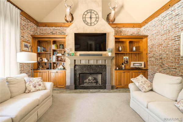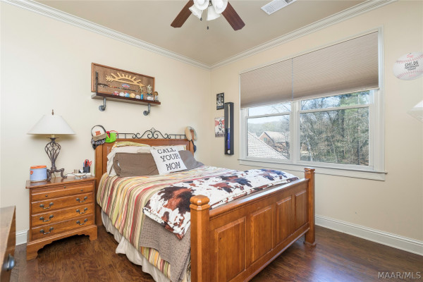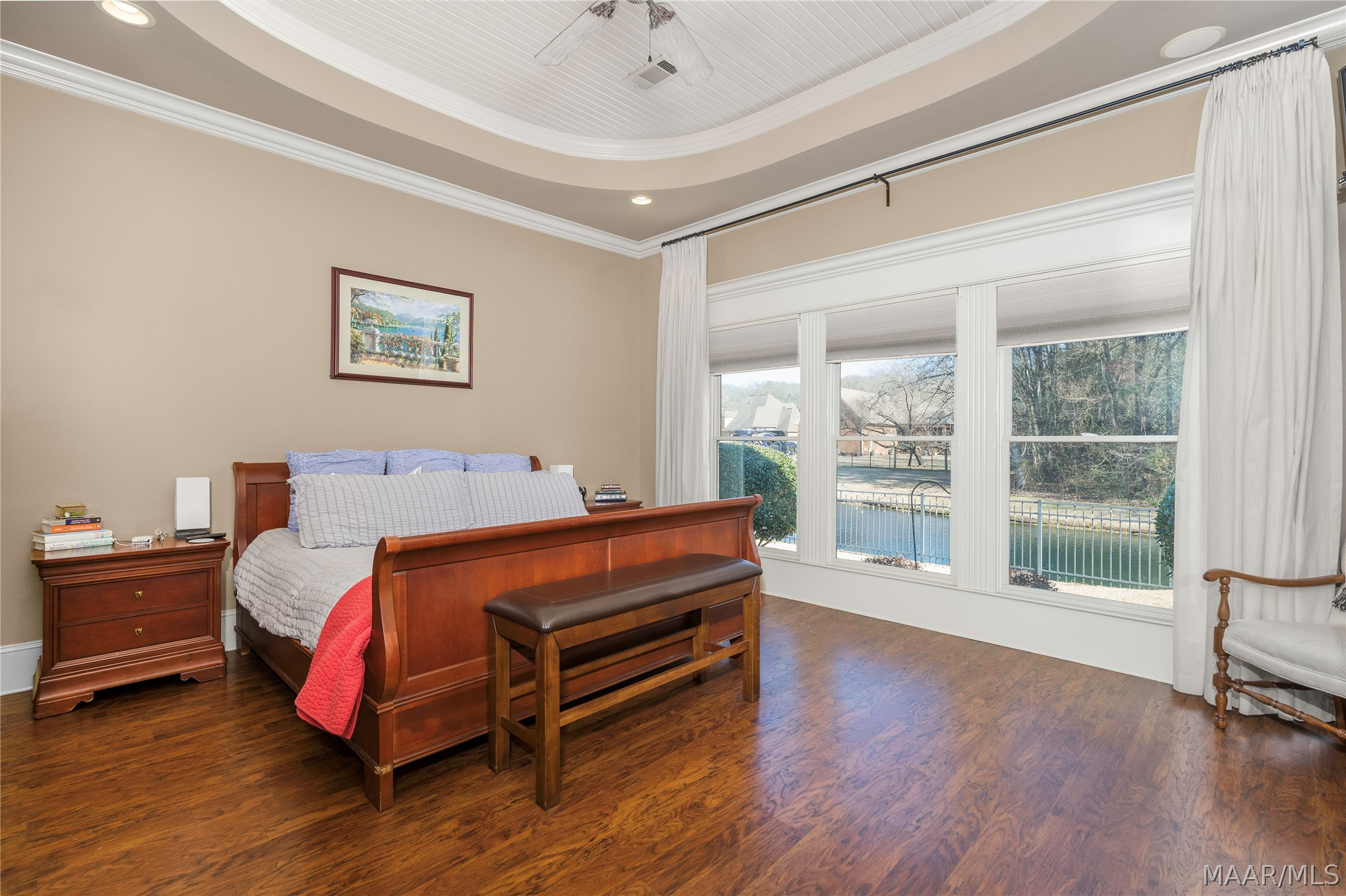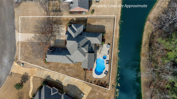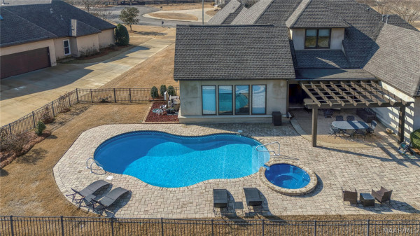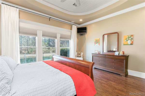 Welcome home to this stunning 5-bedroom, 3 full and 1 half bath that perfectly blends elegance, comfort, and thoughtful design. The formal dining or living room features a fireplace and beamed ceiling, while the gourmet kitchen boasts an oversized island, walk-in pantry, upgraded appliances, and large breakfast room. A dedicated mudroom adds more storage space & convenience. The spacious great/family room showcases vaulted ceilings, fireplace, built-ins, and views of the pool and water. The main level offers two secondary bedrooms sharing a bath with separate vanities, plus a primary suite with serene views, oversized five-piece bath, with abundant built-ins, and two generous sized walk-in closets. Upstairs, enjoy a flexible landing area perfect for a reading nook or office, a bedroom with built-in desks for a home office, another bedroom with an ensuite bath (also accessible from the hall), and a large bonus room with tongue-and-groove beadboard walls and ceiling. Step outside to your private oasis with covered & uncovered patio space, an in-ground pool & hot tub, water and wooded views, and a fully fenced yard. Extensive millwork, graceful archways, and zero carpet with a beautiful mix of wood & tile flooring highlight the home’s craftsmanship. Additional features include four water heaters for maximum comfort, two of three HVAC systems (2014), and a roof replaced in 2020. Conveniently located close to all areas of Montgomery, yet tucked away in a best-kept-secret neighborhood—just 10 minutes to EastChase and 3 minutes to I-85.