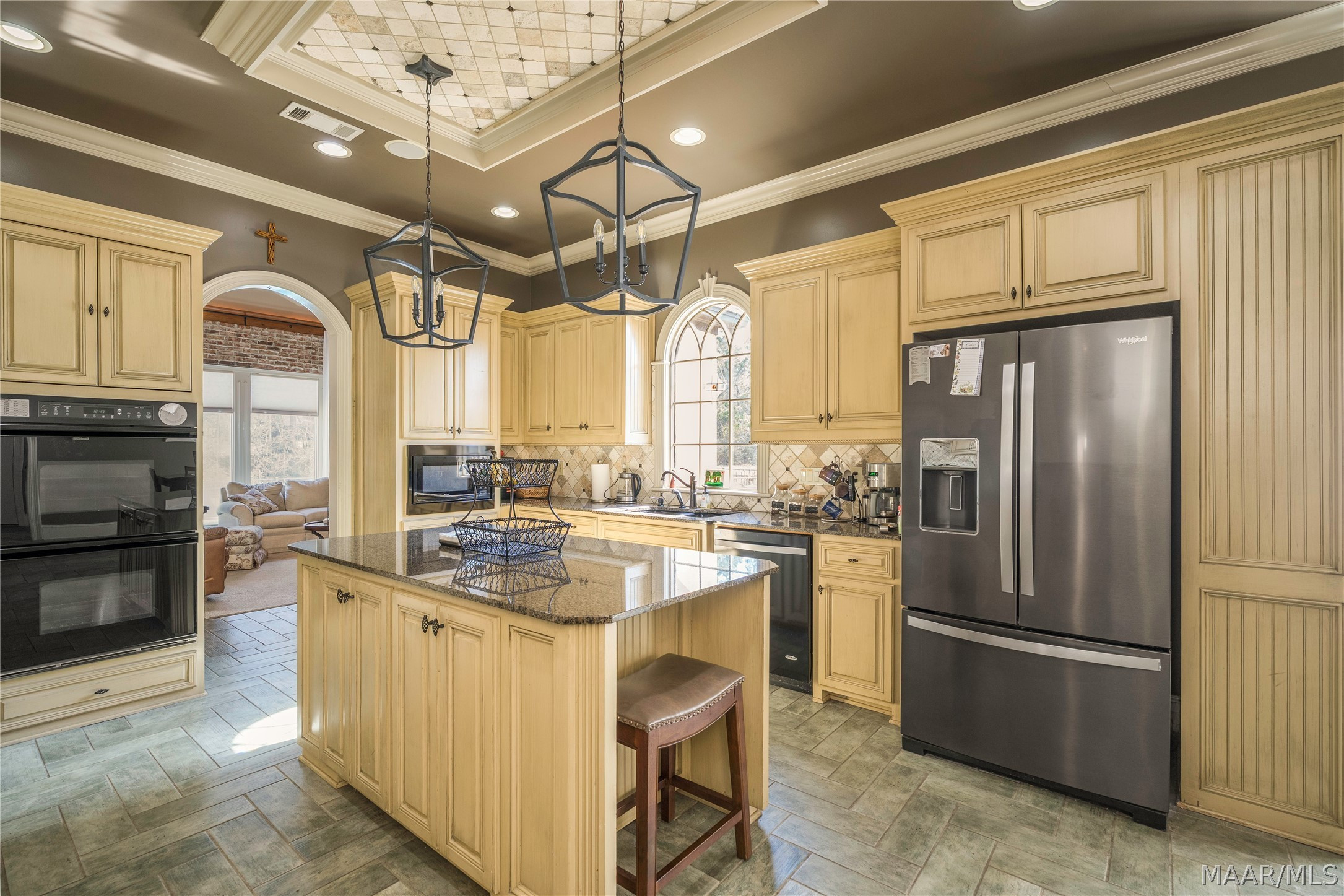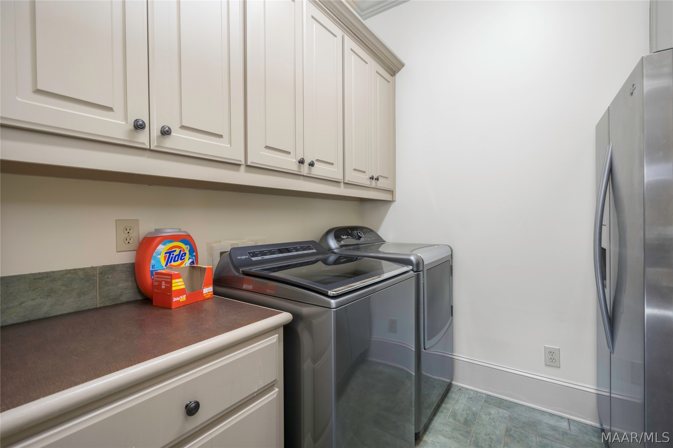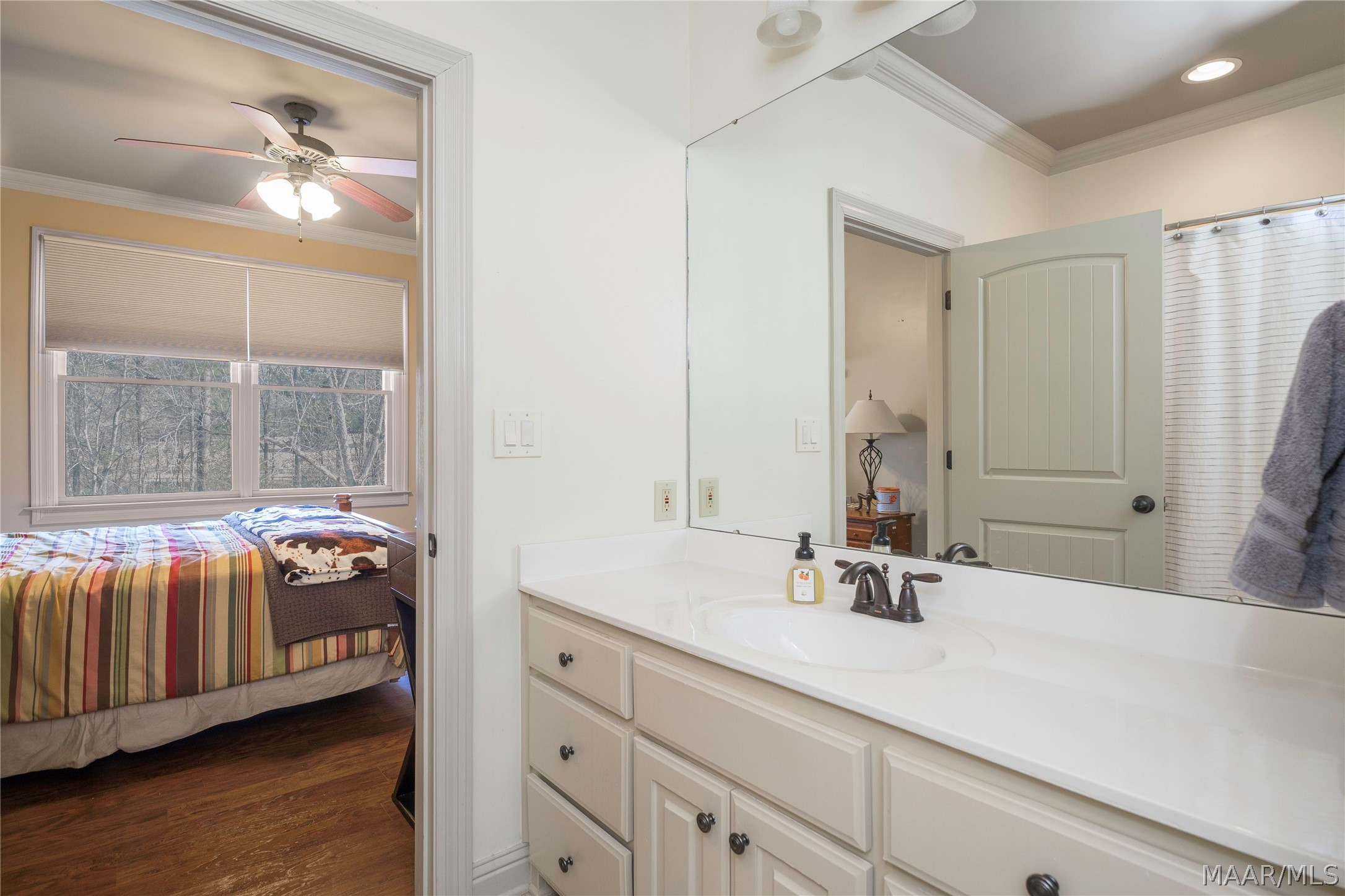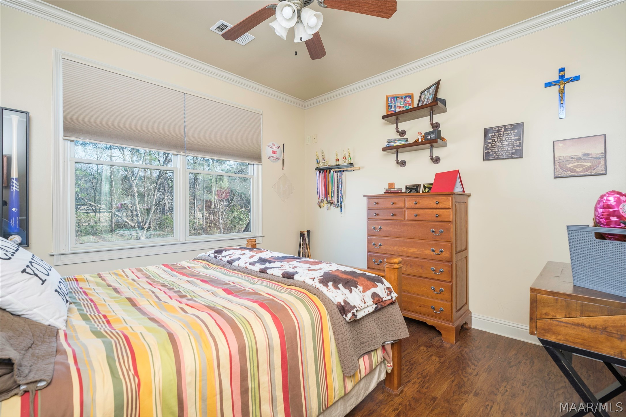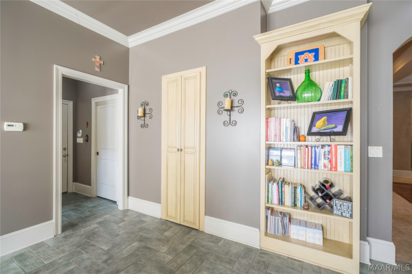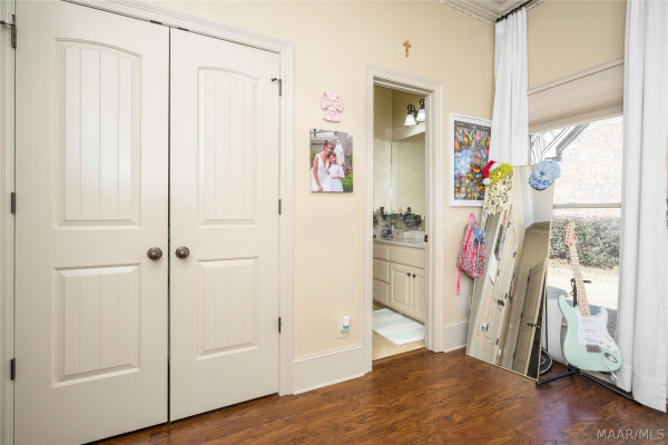 Welcome home to this stunning 5-bedroom, 3 full and 1 half bath that perfectly blends elegance, comfort, and thoughtful design. The formal dining or living room features a fireplace and beamed ceiling, while the gourmet kitchen boasts an oversized island, walk-in pantry, upgraded appliances, and large breakfast room. A dedicated mudroom adds more storage space & convenience. The spacious great/family room showcases vaulted ceilings, fireplace, built-ins, and views of the pool and water. The main level offers two secondary bedrooms sharing a bath with separate vanities, plus a primary suite with serene views, oversized five-piece bath, with abundant built-ins, and two generous sized walk-in closets. Upstairs, enjoy a flexible landing area perfect for a reading nook or office, a bedroom with built-in desks for a home office, another bedroom with an ensuite bath (also accessible from the hall), and a large bonus room with tongue-and-groove beadboard walls and ceiling. Step outside to your private oasis with covered & uncovered patio space, an in-ground pool & hot tub, water and wooded views, and a fully fenced yard. Extensive millwork, graceful archways, and zero carpet with a beautiful mix of wood & tile flooring highlight the home’s craftsmanship. Additional features include four water heaters for maximum comfort, two of three HVAC systems (2014), and a roof replaced in 2020. Conveniently located close to all areas of Montgomery, yet tucked away in a best-kept-secret neighborhood—just 10 minutes to EastChase and 3 minutes to I-85.