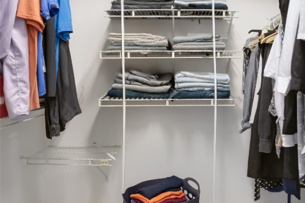 Luxurious en-suite bath featuring a garden tub, a separate shower, and ample storage