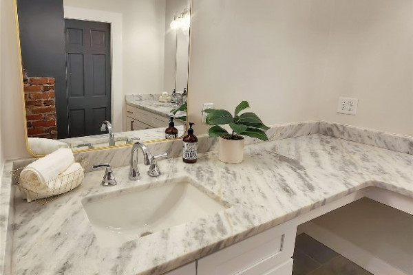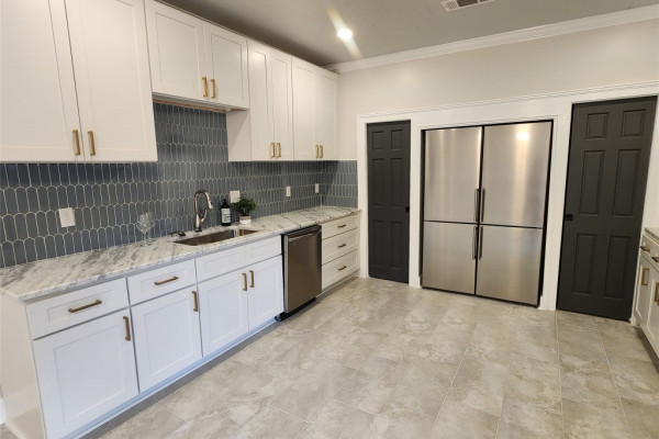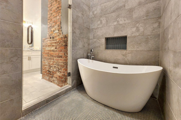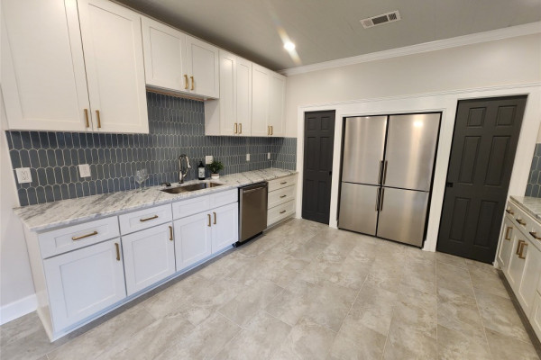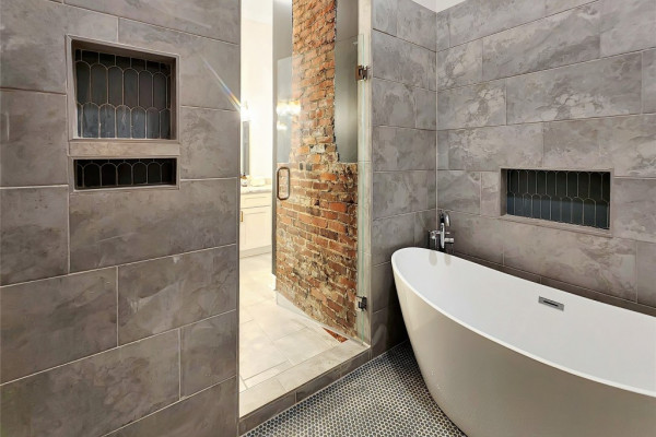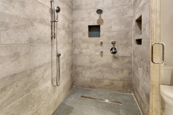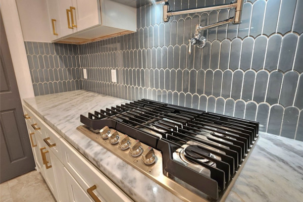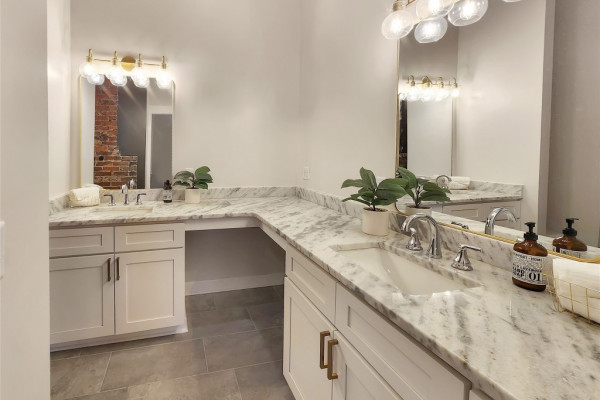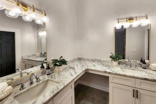 The heart of the home features a spectacular gourmet kitchen with marble countertops, pot filler, bottle washer, touch-activated faucet, dual pantries, and commercial-grade refrigerator. Four generous bedrooms include a magazine-worthy owner’s suite with an indulgent en-suite bathroom showcasing marble double vanity, exposed brick accent wall, and a luxurious wetroom with soaking tub and multi-nozzle shower. Three custom-designed bathrooms and a trendy laundry room with exposed original shiplap complete the interior.