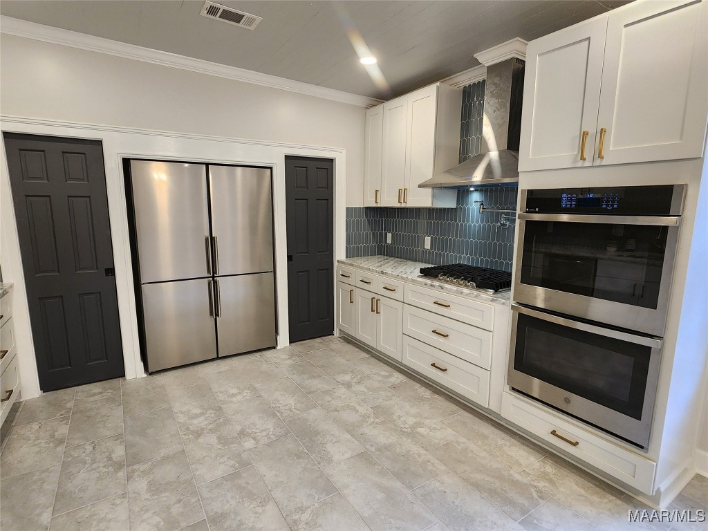 The heart of the home features a spectacular gourmet kitchen with marble countertops, pot filler, bottle washer, touch-activated faucet, dual pantries, and commercial-grade refrigerator. Four generous bedrooms include a magazine-worthy owner’s suite with an indulgent en-suite bathroom showcasing marble double vanity, exposed brick accent wall, and a luxurious wetroom with soaking tub and multi-nozzle shower. Three custom-designed bathrooms and a trendy laundry room with exposed original shiplap complete the interior.