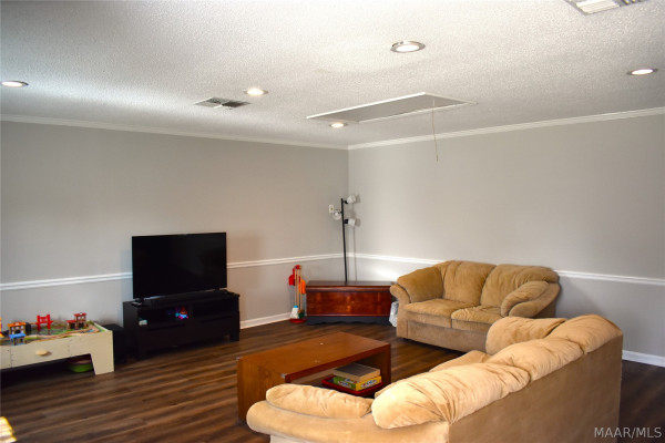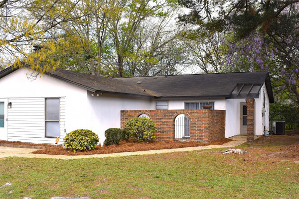 RUN to see this recently updated home that is move-in ready! Features include new/updated flooring throughout, a large original living room (currently used as home office/computer area) PLUS a huge great room addition on the front of the house with stone fireplace and storage closets. Kitchen has granite countertops and updated fixtures. Dining room opens to private walled courtyard for entertaining. Rear covered patio is a great spot to relax, and yard is completely fenced for pets and wandering toddlers! Tucked back in a well-established neighborhood for privacy and quiet, yet SO close to shopping, dining, churches, and entertainment. Larger than most in neighborhood due to the great room addition.