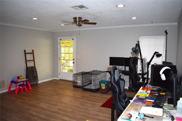 RUN to see this recently updated home that is move-in ready! Features include new/updated flooring throughout, a large original living room (currently used as home office/computer area) PLUS a huge great room addition on the front of the house with stone fireplace and storage closets. Kitchen has granite countertops and updated fixtures. Dining room opens to private walled courtyard for entertaining. Rear covered patio is a great spot to relax, and yard is completely fenced for pets and wandering toddlers! Tucked back in a well-established neighborhood for privacy and quiet, yet SO close to shopping, dining, churches, and entertainment. Larger than most in neighborhood due to the great room addition.