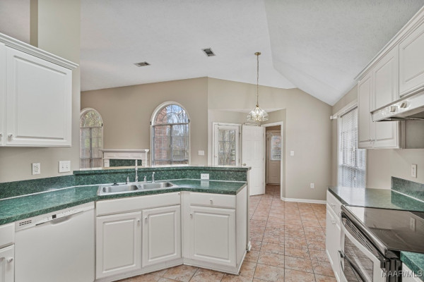 The spacious master bedroom boasts vaulted ceilings and a large ensuite bath, providing a comfortable retreat. A generous laundry room is conveniently located off the kitchen for added functionality. Roof is only 2 years old. Freshly painted and LVP throughout the home.