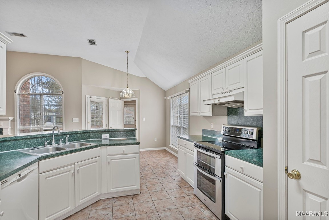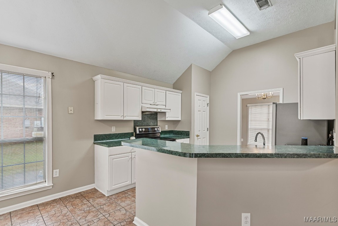 The spacious master bedroom boasts vaulted ceilings and a large ensuite bath, providing a comfortable retreat. A generous laundry room is conveniently located off the kitchen for added functionality. Roof is only 2 years old. Freshly painted and LVP throughout the home.