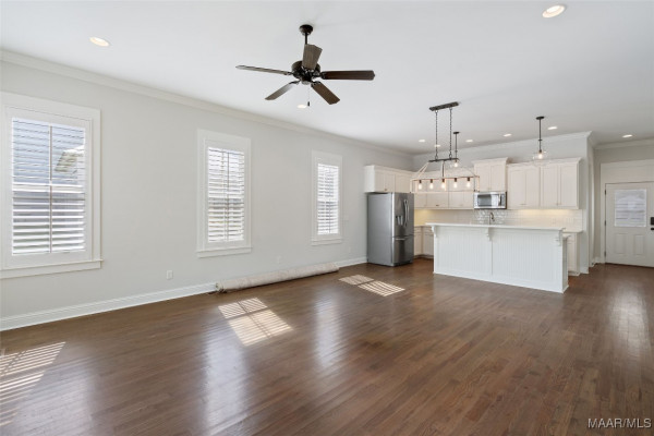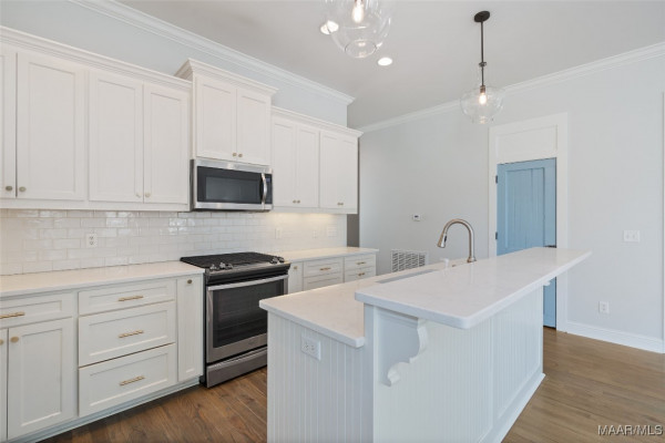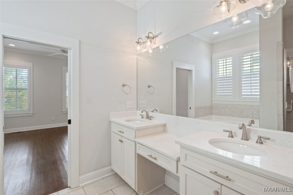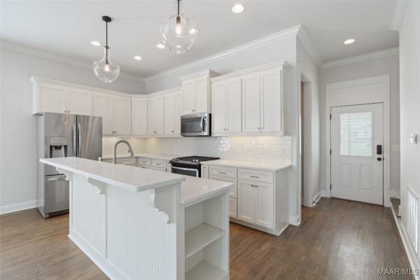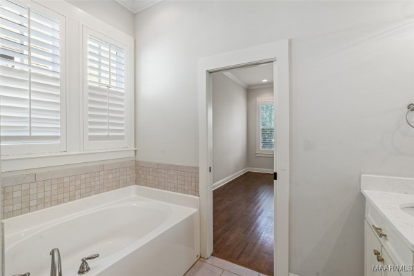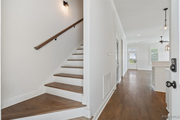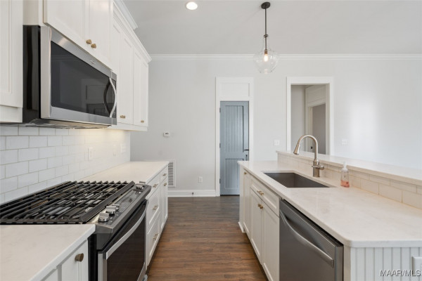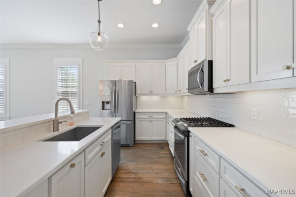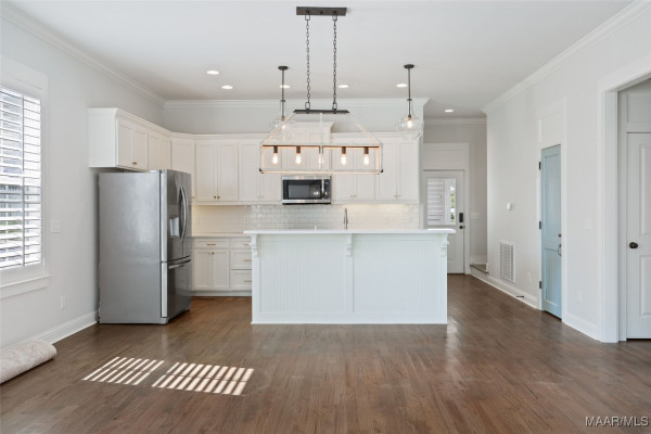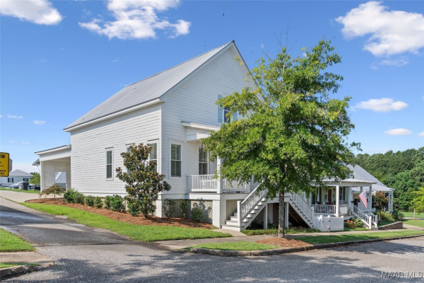 You will FALL IN LOVE with this 4 Bedroom, 3.5 Bath cottage! Built w/designer touches throughout, you will appreciate the hardwood floors, tall windows, crown molding, plantation shutters and custom cabinetry on the 1st floor. The open plan makes entertaining a breeze – create in the kitchen while engaging with your guests. The stainless steel farmhouse sink, subway tile backsplash, gas range and spacious island are both beautiful and functional. Be sure to peek into the pantry behind its antique door. Your owner’s suite takes care of you with its sizable bedroom area and spacious bath complete with double vanity, makeup area, loads of cabinet space, deep soaking tub and tiled shower and toilet enclosure. A separate linen closet and owner’s closet w/custom closet system complete the suite. The upstairs features a mini-suite with en suite bath that can also serve as family room, office or guest suite. Two other bedrooms share a hall bath. All bedrooms feature closets with TONS of storage. Every square inch of the upstairs is usable with an additional 220 sf+ of walk-in attic storage. Energy efficiency and convenience complete the appeal of this home. High efficiency heat pumps, a tankless water heater & high R-value construction keep energy bills low. The upstairs features new paint and high end carpet. Only 2 steps to enter from an attached 2 bay carport w/storage room plus a covered space for a golf cart. You even have a sitting or grilling space off the carport. With a park to the rear, this home is less than 2 blocks from the Lucas Point swimming pool and the Town Square AND enjoys lake views from the front porch. With hundreds of acres of lakes and green spaces, two pools, a marina, ball field, tennis and pickleball courts, trails and more, take advantage of all The Waters has to offer! Zoned for Pike Road Schools. Owner reserves the right to approve mortgage lender.