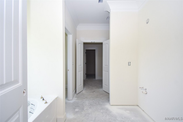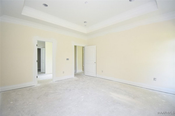 The primary suite boasts a spacious walk-in closet, double vanity sinks, a separate soaking tub, and a tiled shower for a spa-like experience.