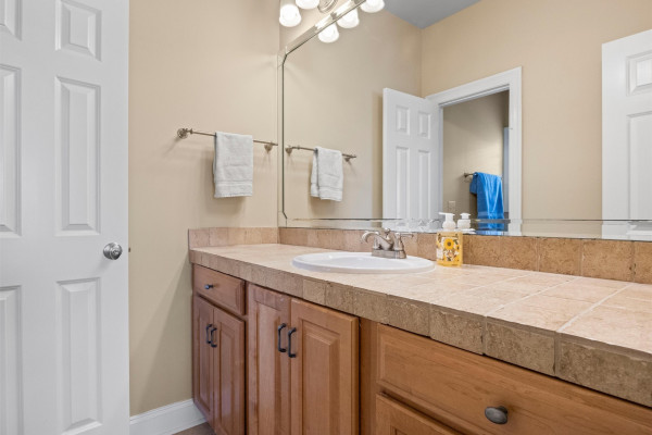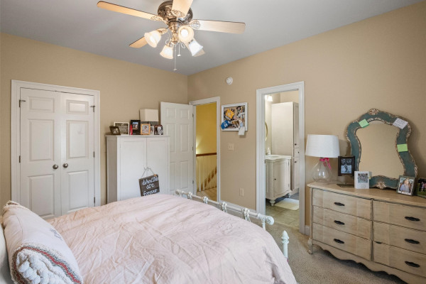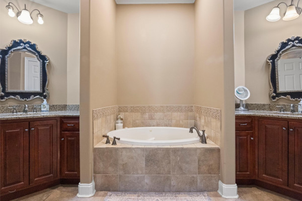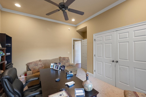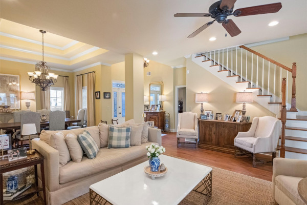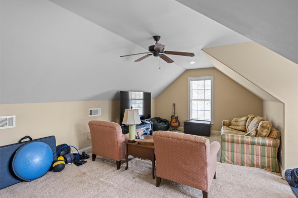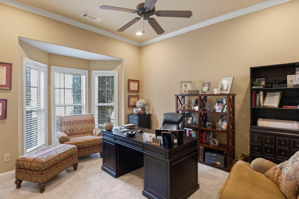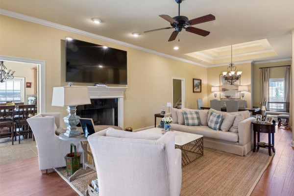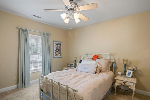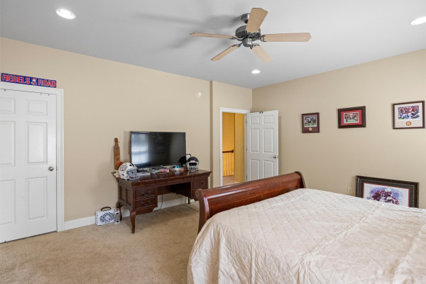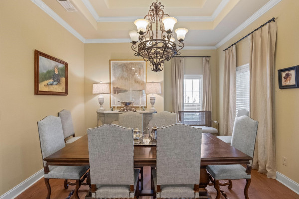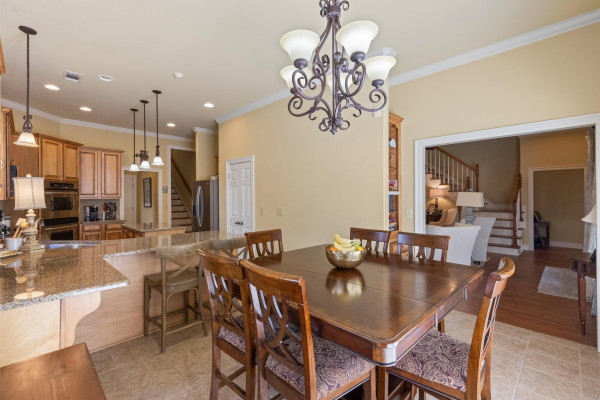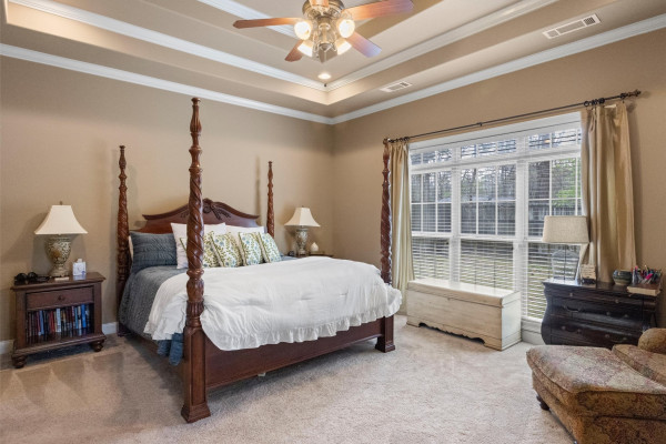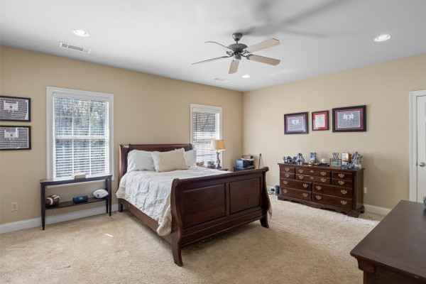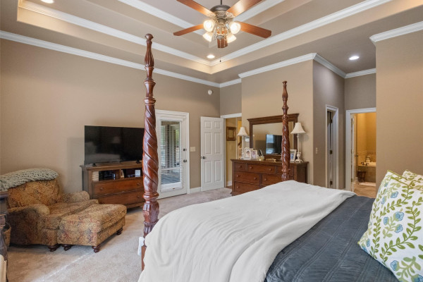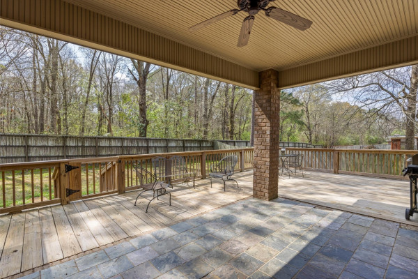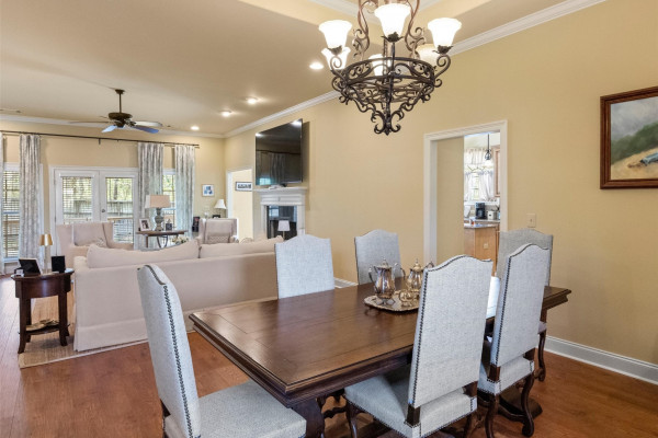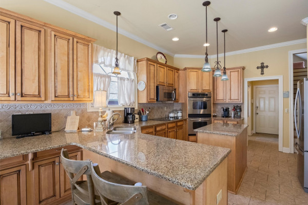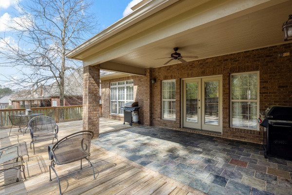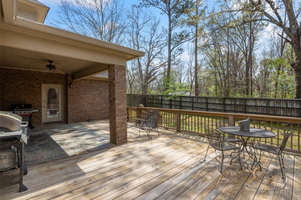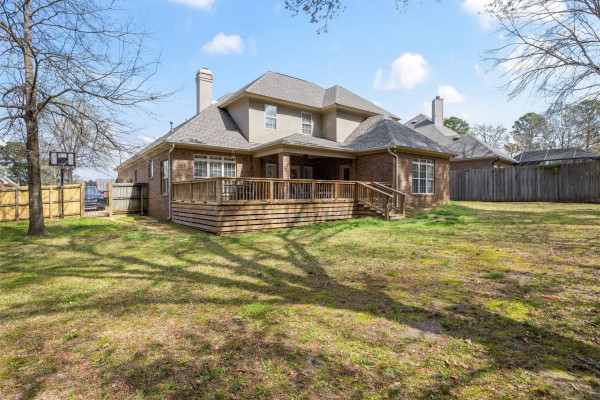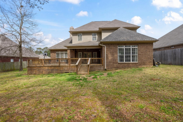 Custom-built by Blackwell Construction, this beautifully crafted 5-bedroom, 5-bath home offers exceptional space, quality, and thoughtful design throughout. The flexible floor plan features the private primary suite and a guest suite on the main level, while upstairs you’ll find three additional bedrooms, three baths, and a spacious bonus room. The downstairs guest suite currently used as a study, offers excellent privacy and separation from the primary suite. Inside, you’ll notice numerous upgraded details including high ceilings, crown molding, rounded corners, and elegant double tray ceilings in both the dining room and primary bedroom. The open layout is ideal for entertaining, with the dining room flowing seamlessly into the great room featuring a gas fireplace and French doors that open to a large covered patio and expansive wood deck. The kitchen is both stylish and functional, offering abundant cabinetry, granite countertops, a large granite work island, breakfast bar, stainless double ovens, microwave, a new cooktop (2025), and a new dishwasher (2021). The laundry room is well-equipped with built-in cabinets and a convenient utility sink. Just off the kitchen, a second staircase leads to the large bonus room—perfect for a media room, playroom, or additional living space. The primary bath provides a relaxing retreat with a jetted garden tub, double vanities, and a tiled shower with built-in seating. This one-owner home has been beautifully maintained with major updates including a new roof (2023), beautiful new LVP flooring (approx. 2022), and a New HVAC installed just last week with both systems professionally serviced twice a year . Schedule your showing today to see this move-in ready home!