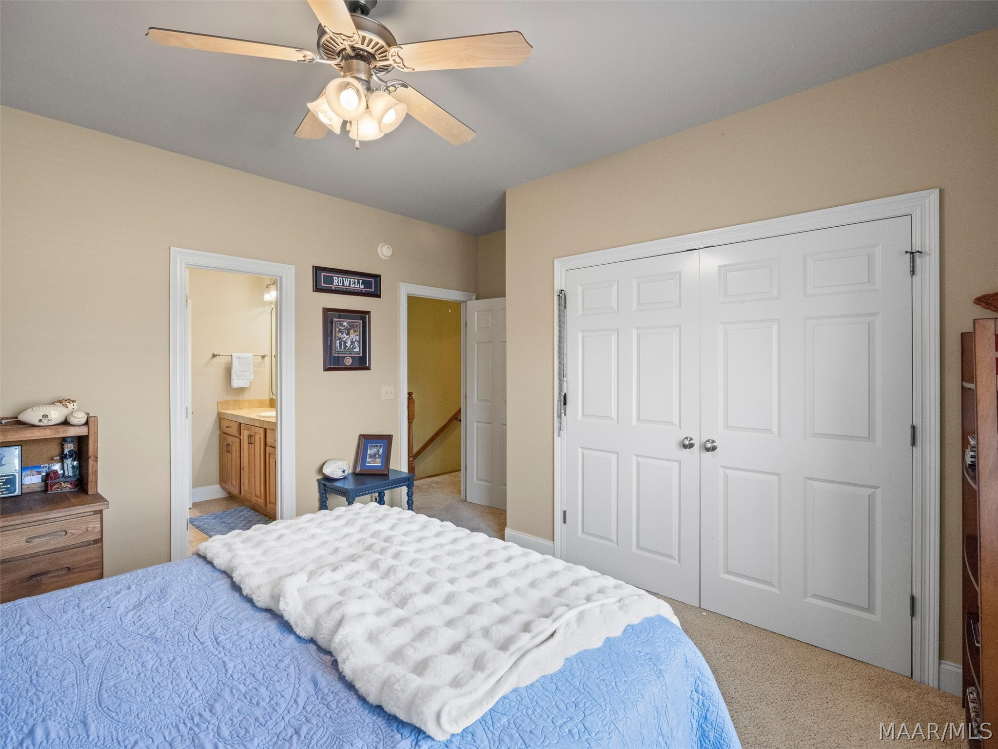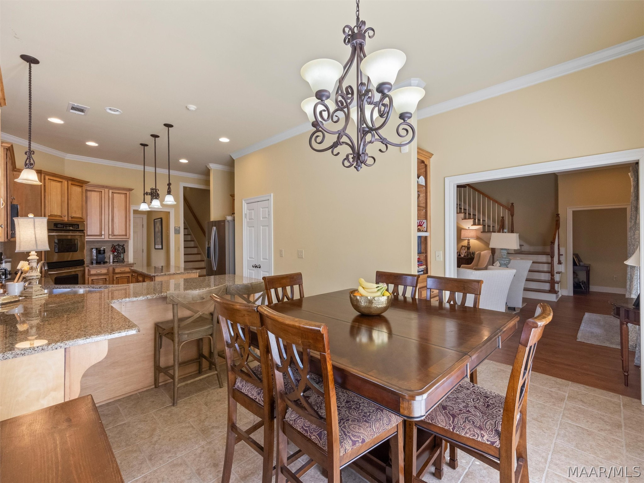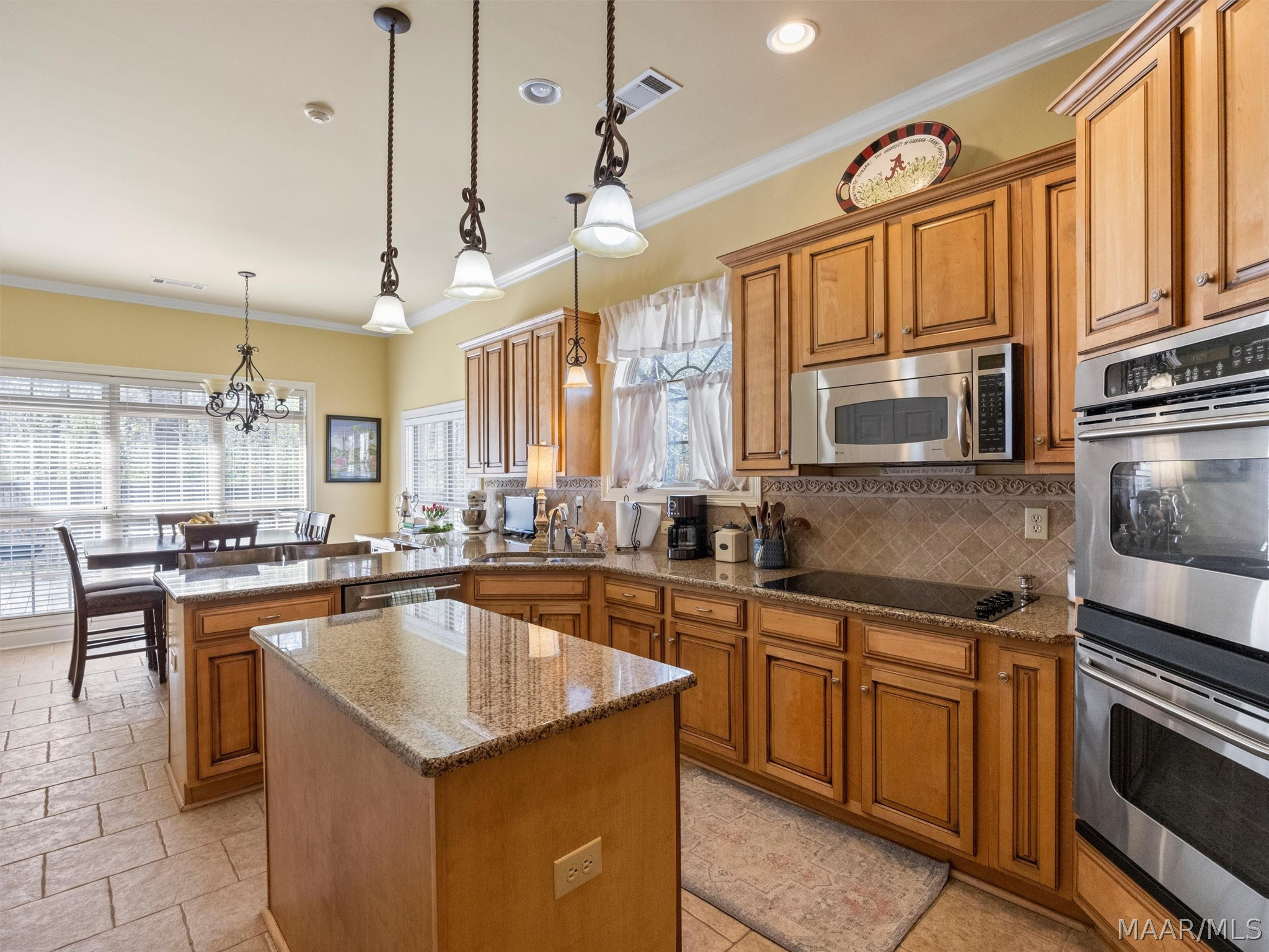 Custom-built by Blackwell Construction, this beautifully crafted 5-bedroom, 5-bath home offers exceptional space, quality, and thoughtful design throughout. The flexible floor plan features the private primary suite and a guest suite on the main level, while upstairs you’ll find three additional bedrooms, three baths, and a spacious bonus room. The downstairs guest suite currently used as a study, offers excellent privacy and separation from the primary suite. Inside, you’ll notice numerous upgraded details including high ceilings, crown molding, rounded corners, and elegant double tray ceilings in both the dining room and primary bedroom. The open layout is ideal for entertaining, with the dining room flowing seamlessly into the great room featuring a gas fireplace and French doors that open to a large covered patio and expansive wood deck. The kitchen is both stylish and functional, offering abundant cabinetry, granite countertops, a large granite work island, breakfast bar, stainless double ovens, microwave, a new cooktop (2025), and a new dishwasher (2021). The laundry room is well-equipped with built-in cabinets and a convenient utility sink. Just off the kitchen, a second staircase leads to the large bonus room—perfect for a media room, playroom, or additional living space. The primary bath provides a relaxing retreat with a jetted garden tub, double vanities, and a tiled shower with built-in seating. This one-owner home has been beautifully maintained with major updates including a new roof (2023), beautiful new LVP flooring (approx. 2022), and a New HVAC installed just last week with both systems professionally serviced twice a year . Schedule your showing today to see this move-in ready home!