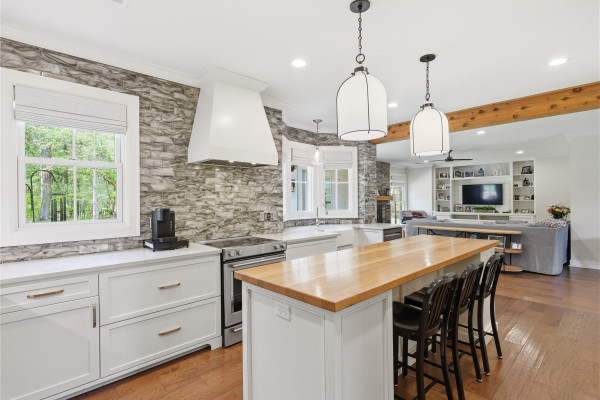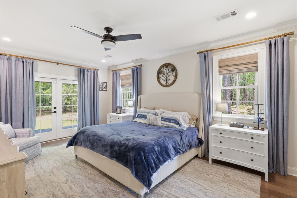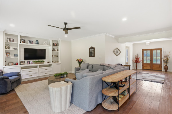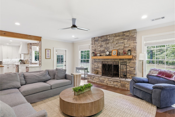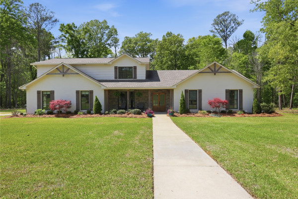 Absolutely beautiful & private retreat set on 7 picturesque acres, the property is surrounded by towering champion trees & a long, welcoming drive lined with crêpe myrtles. Located in the highly sought after Foxwood neighborhood, this completely renovated residence offers an exceptional blend of timeless charm & modern luxury. Thoughtfully redesigned by Heather Steen & renovated by Selby Davis, the home showcases a seamless fusion of rustic elegance & contemporary sophistication. A striking exterior of natural stone & wood complements the surrounding landscape, while double front doors open to a grand, light-filled foyer. To the left, a spacious dining room provides the perfect setting for hosting, while straight ahead, the impressive great room features custom built-ins & a stunning stone fireplace as its focal point. This space flows effortlessly into the chef’s kitchen, designed for both function & style, with quartz countertops, a large work island with breakfast bar, double ovens, stainless appliances, farmhouse sink, & custom cabinetry, including a full wall of additional storage & a generous pantry. Just off the kitchen, a step-down playroom offers flexibility & comfort, complete with a connected full bath. The laundry room is equally impressive, featuring an entire wall of shelving, extensive counter space, & a dedicated folding area. To the right of the foyer, a private home office with a built-in desk provides a quiet workspace. Nearby, the primary suite features French doors that open to a covered patio. The en-suite bath is beautifully appointed with a soaking tub, double vanities with quartz countertops, a large frameless shower with bench seating, & two spacious walk-in closets. Upstairs, a versatile loft area is complemented by three generously sized bedrooms, fabulous closets & a well-appointed bath with double vanities, a tub/shower combination, & a full wall of storage cabinets. Truly one-of-a-kind property! Call for your private tour today.