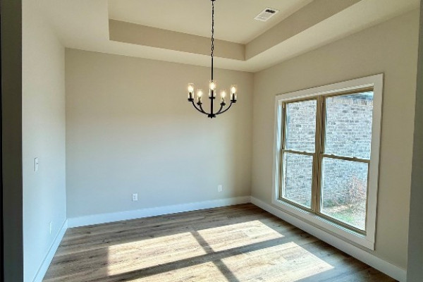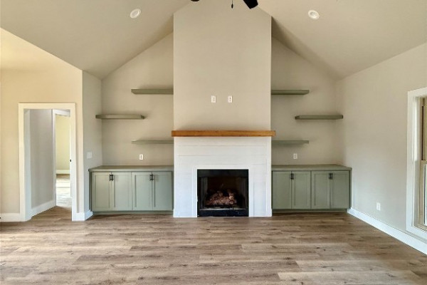 This thoughtfully designed floor plan offers an open-concept floor plan ideal for both entertaining and comfortable daily living. This beautiful, newly constructed home features a stunning kitchen complete with a large work island, a spacious pantry, tons of cabinet space and a seamless flow into dining and living areas. The vaulted ceiling in the great room adds a light and airy feel, while the LVP flooring throughout provides durability, style and easy maintenance. Step outside to the covered back patio and enjoy year-round gatherings around the outdoor fireplace. Located in a highly sought-after school district, this home offers tranquility and convenience. There are several more new homes available as well.