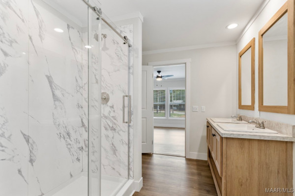 TRULY TURN-KEY READY! Nestled on a spacious lot, this home boasts 4 bedrooms and 2 full baths, including a generous primary suite with a walk-in closet & a spa like bathroom. The primary bath is thoughtfully designed with a luxurious shower, His & Her double vanities, and abundant room for storage. The open-concept layout seamlessly integrates the kitchen, dining and living room, creating an inviting space for family and entertaining. Large windows allow ample natural light, creating a bright and airy atmosphere. Beautiful modern flooring runs throughout, adding warmth and durability. The kitchen is a standout feature, showcasing light wood cabinetry, stainless steel appliances, and a striking island that provides additional prep space and causal seating. The bedrooms are well-appointed, with sleeping arrangements to accommodate numerous guests. Sip your morning coffee on the brand new deck out back with a wonderful and peaceful view. This home’s layout and features make it an ideal choice for families or those seeking a spacious, modern living environment with a touch of rustic charm.