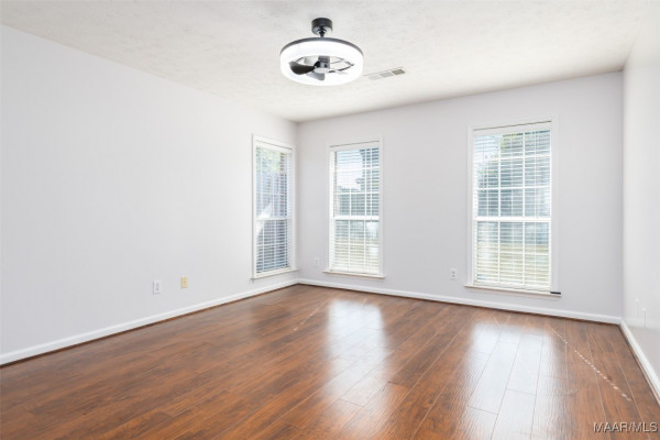 Tucked away at the end of a cul-de-sac this home offers comfort, style and convenience. You’ll love the easy access to local shopping, restaurants, medical facilities and I65 & I85. Plus you’re only about 15-20 minutes from Maxwell Air Force Base – perfect for commuters or military personnel. Inside the home you will find numerous updates. In the past couple of months, the home has received a number of fresh updates including new wood flooring (NO CARPET!), new ceiling fans and lighting, a new water heater and Kitchen and Primary Bathroom renovations. The Kitchen now features beautiful new countertops, modern appliances and a bright, OPEN design that flows seamlessly into the Breakfast Area and Great Room – perfect for everyday living and entertaining. Enjoy gathering for family meals or hosting friends in the welcoming Dining Room. The Primary Suite offers a relaxing retreat with its remodeled Bathroom, highlighted by a large walk-in shower with a glass barn-style sliding door, double vanities, a walk in closet and private toilet room. The split bedroom floor plan provides privacy, with the two Guest Bedrooms located on the opposite side of the home from the Primary Suite. Major systems have also been updated. The Roof and HVAC were replaced about five years ago, giving you peace of mind. Step outside and enjoy the ENORMOUS fenced in back yard. You will also enjoy a bonus storage room attached to the rear of the home – perfect for housing outdoor gear, tools, or seasonal decor. This home combines thoughtful updates with an unbeatable location – don’t miss the chance to make it yours!