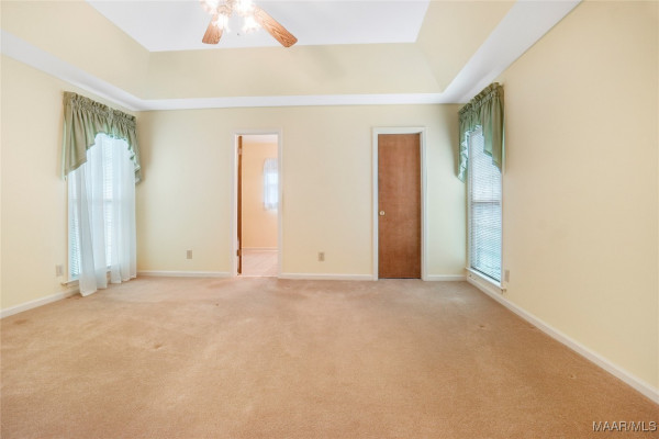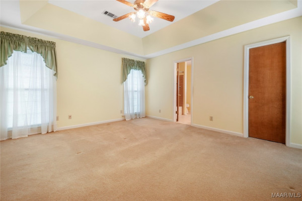 Each bedroom is generously sized with ample closet space. The primary suite includes a tray ceiling, walk-in closet, and an en-suite bath with double vanities, a shower/tub combo, and plenty of space to prepare for the day.