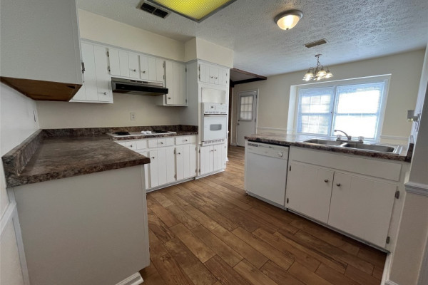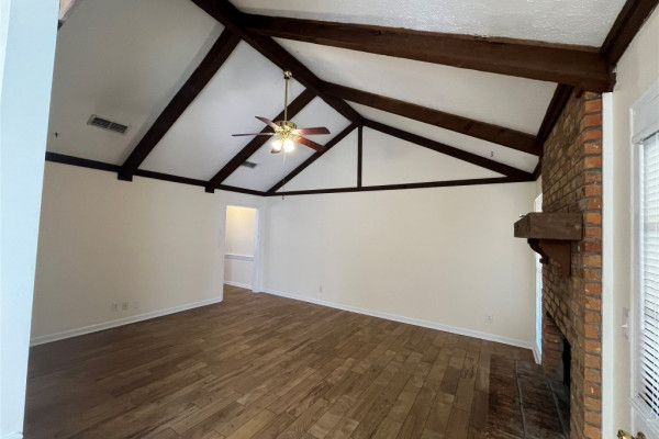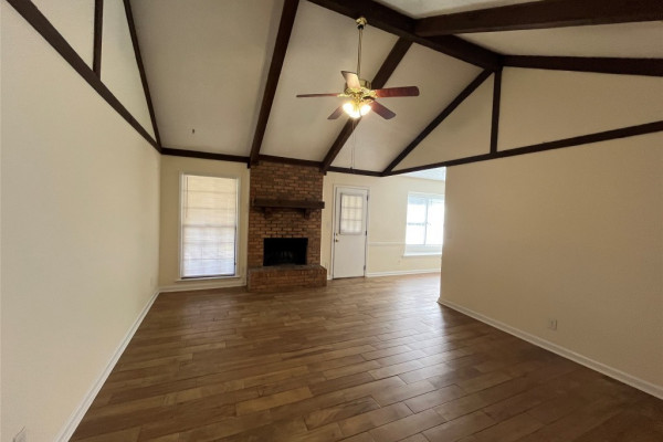 Lovely warm 4 bedroom and 2 bath home in quiet neighborhood. Beautiful hard tile in living areas that looks like hardwood flooring. Easy to maintain and never have to replace. Large Living/Dining combo, vaulted ceiling family room with fireplace. Kitchen plenty of cabinets and eat-in kitchen. Main bedroom is spacious and features huge walk-in closet. Beautiful private backyard with covered patio. Extra parking pad in front of house.
