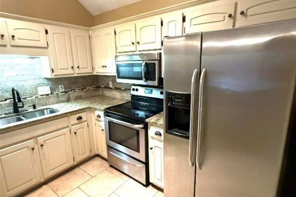This is a must see 3 bedroom 2 bath patio home. This home has it all with lots of amenities that homeowners love. It features beautiful stainless steel appliances, granite countertops in the kitchen and bathrooms. The dining room and living room has immaculate laminate flooring that compliments the tile in kitchen. Master bedroom is a great size that has 2 walk in closets. Call your favorite agent to schedule a tour.