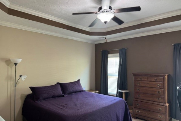 The master suite offers a walk-in closet and a relaxing bathroom with a separate garden tub and shower. Step outside to enjoy the large, fully privacy-fenced backyard—ideal for kids, pets, or weekend cookouts. A two-car garage provides extra convenience. Home also has Fiber Internet access.
