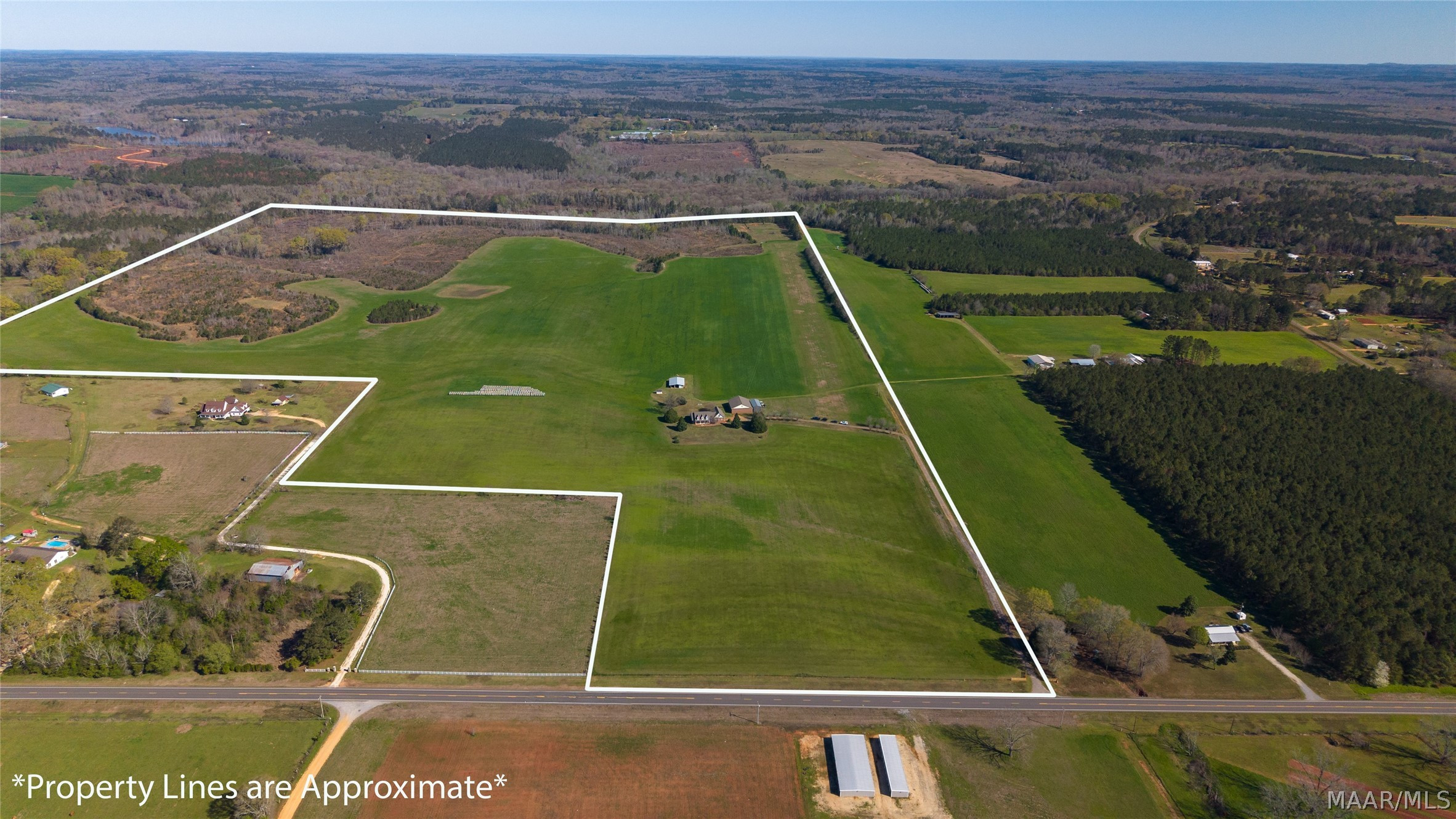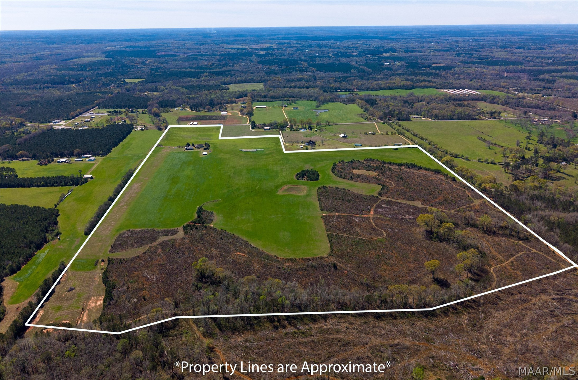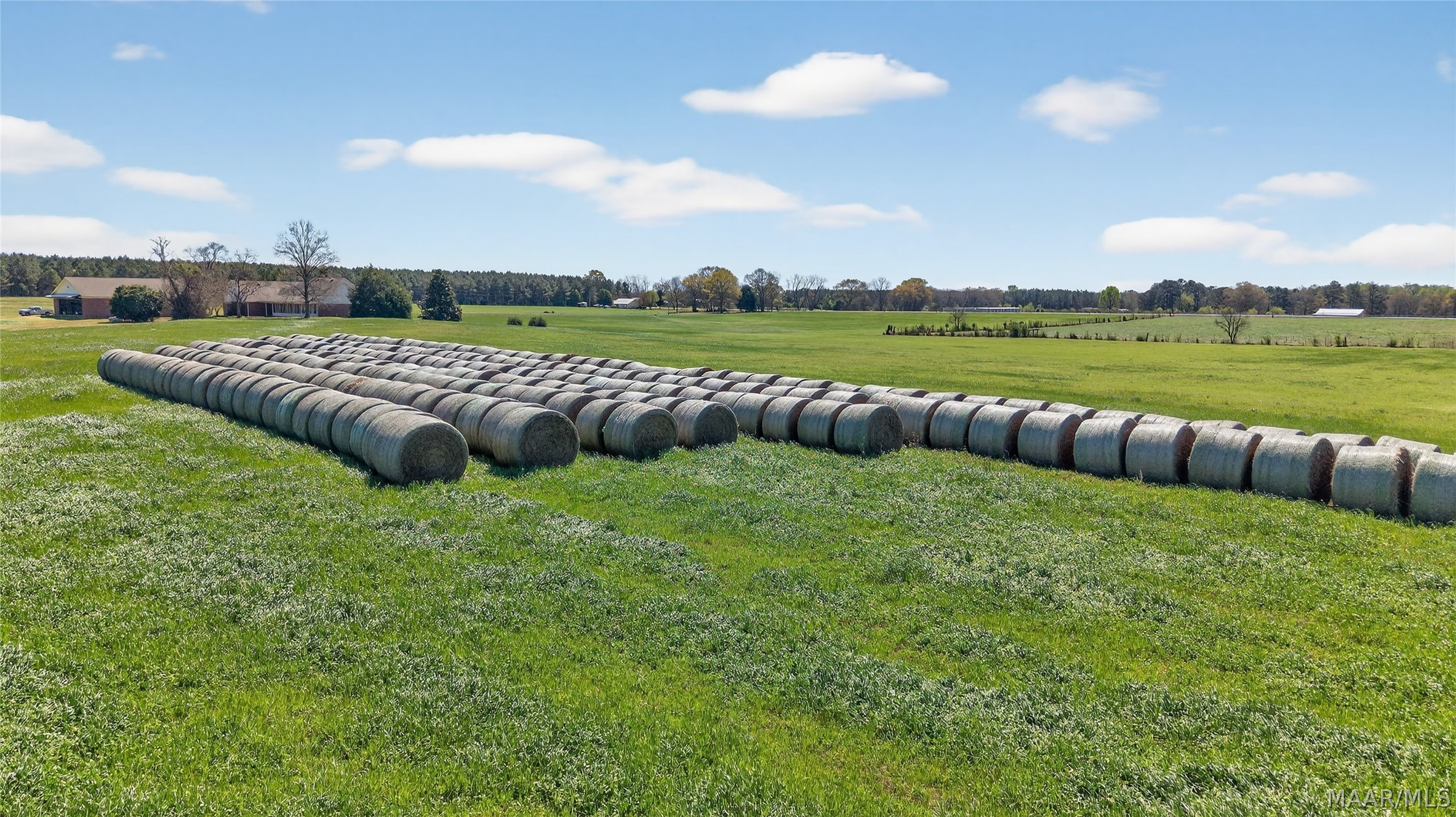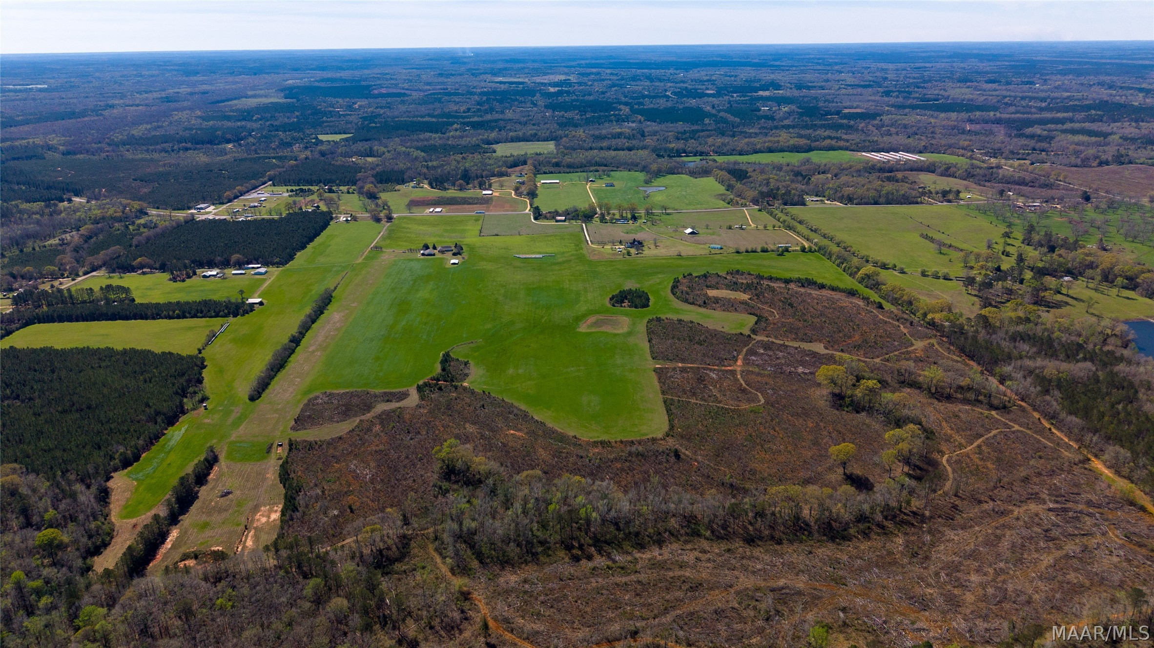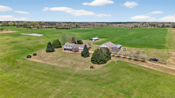 Welcome to 6819 Luverne Hwy, an exceptional 177± acre estate offering a rare fusion of refined country living, premier recreational amenities, and private aviation capability. This distinguished property provides an unmatched level of privacy, versatility, and long-term investment potential. The residence is a well-appointed brick home built in 1997, encompassing approximately 2,470 heated and cooled square feet. Designed for both comfort and functionality, it features three spacious bedrooms, two full baths, one half bath, a dedicated office, and an expansive upstairs bonus room ideal for additional living or entertaining space. The estate is further enhanced by impressive improvements, including a 50′ x 40′ shop, an approximately 3,000 square foot aircraft hangar, and an 18′ x 50′ lean-to. A private 2,000± foot airstrip is seamlessly integrated into the landscape, offering a rare opportunity for aviation enthusiasts or future airpark development. Utilities include county water with a well option, underground power, and partial fencing. The land showcases gently rolling topography with a curated blend of open pasture and managed timber. Approximately 102 acres are dedicated to productive hayfield, while 60 acres feature a well-established loblolly pine plantation, providing both immediate income and long-term value. Recreational offerings are equally impressive, including abundant deer and turkey hunting, a 200-yard shooting range, multiple pond sites, and an established trail system for seamless access throughout the property. This is more than a property—it is a legacy estate offering an unparalleled blend of luxury, recreation, and investment potential in the heart of Butler County.
