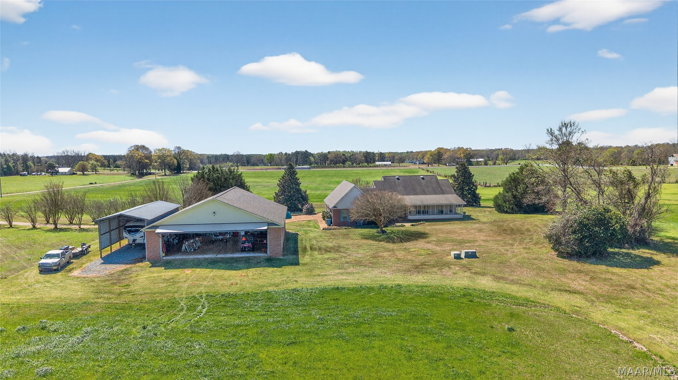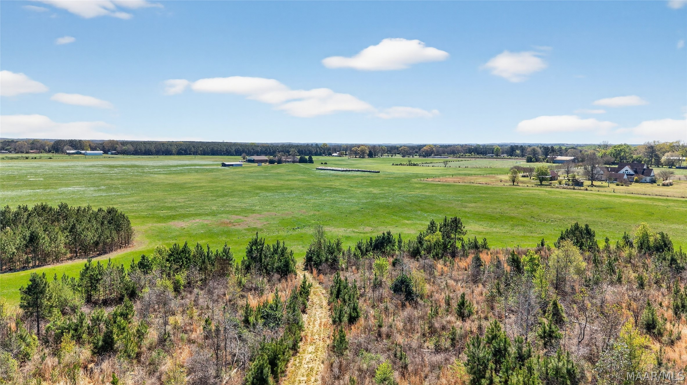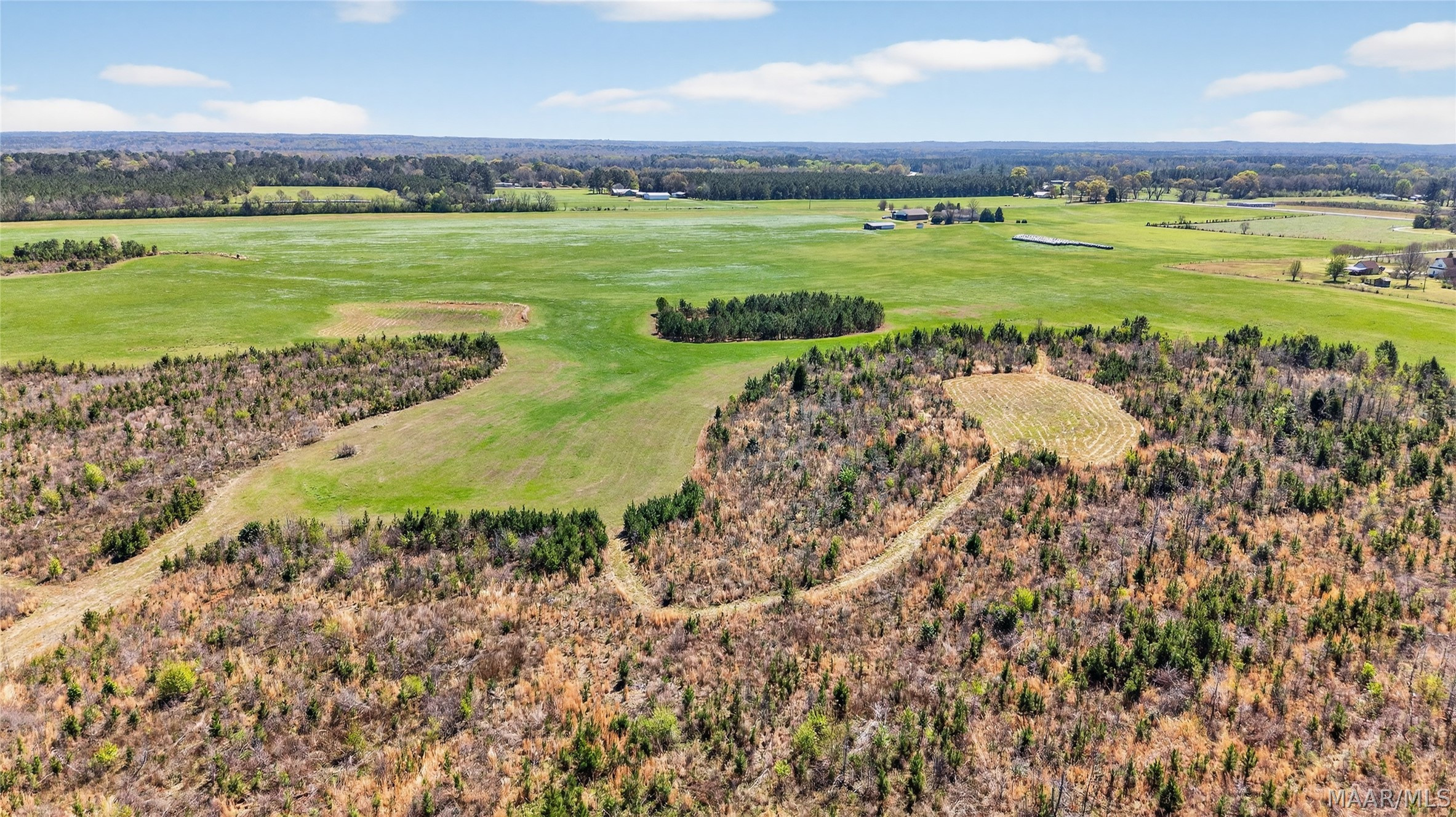 Welcome to 6819 Luverne Hwy, an exceptional 177± acre estate offering a rare fusion of refined country living, premier recreational amenities, and private aviation capability. This distinguished property provides an unmatched level of privacy, versatility, and long-term investment potential. The residence is a well-appointed brick home built in 1997, encompassing approximately 2,470 heated and cooled square feet. Designed for both comfort and functionality, it features three spacious bedrooms, two full baths, one half bath, a dedicated office, and an expansive upstairs bonus room ideal for additional living or entertaining space. The estate is further enhanced by impressive improvements, including a 50′ x 40′ shop, an approximately 3,000 square foot aircraft hangar, and an 18′ x 50′ lean-to. A private 2,000± foot airstrip is seamlessly integrated into the landscape, offering a rare opportunity for aviation enthusiasts or future airpark development. Utilities include county water with a well option, underground power, and partial fencing. The land showcases gently rolling topography with a curated blend of open pasture and managed timber. Approximately 102 acres are dedicated to productive hayfield, while 60 acres feature a well-established loblolly pine plantation, providing both immediate income and long-term value. Recreational offerings are equally impressive, including abundant deer and turkey hunting, a 200-yard shooting range, multiple pond sites, and an established trail system for seamless access throughout the property. This is more than a property—it is a legacy estate offering an unparalleled blend of luxury, recreation, and investment potential in the heart of Butler County.