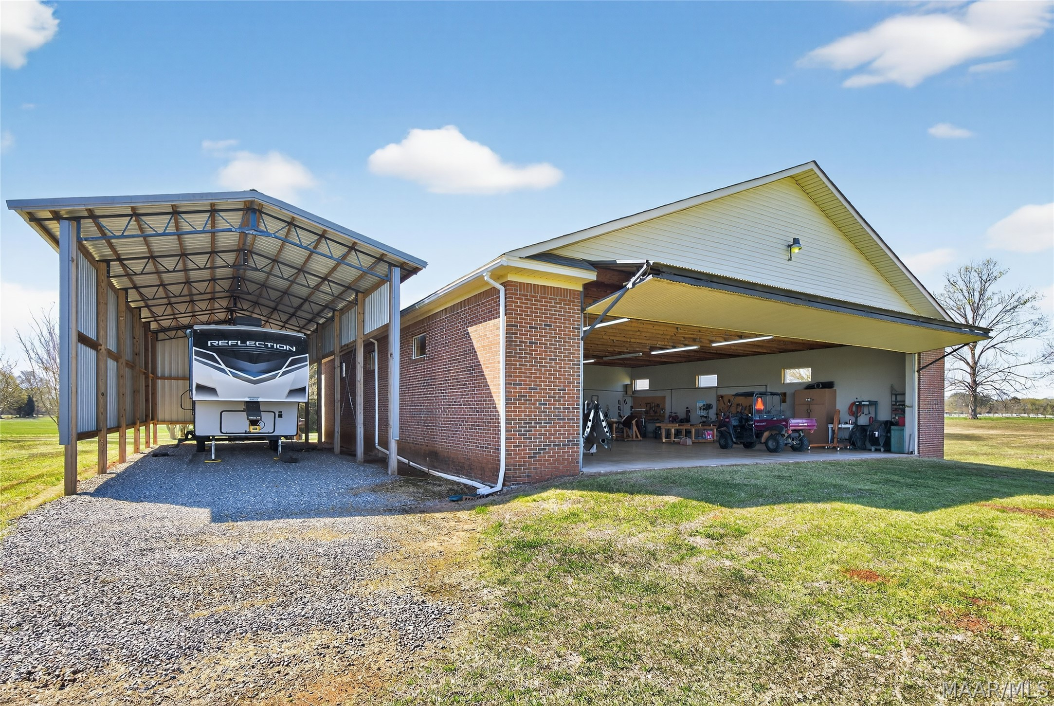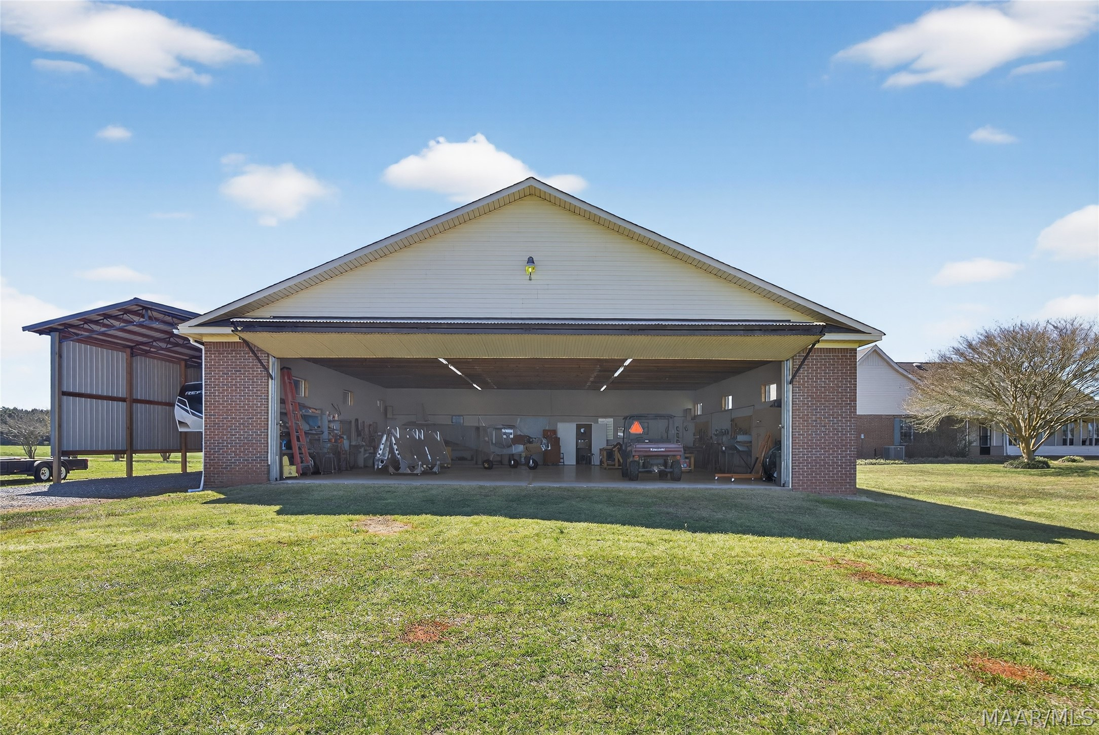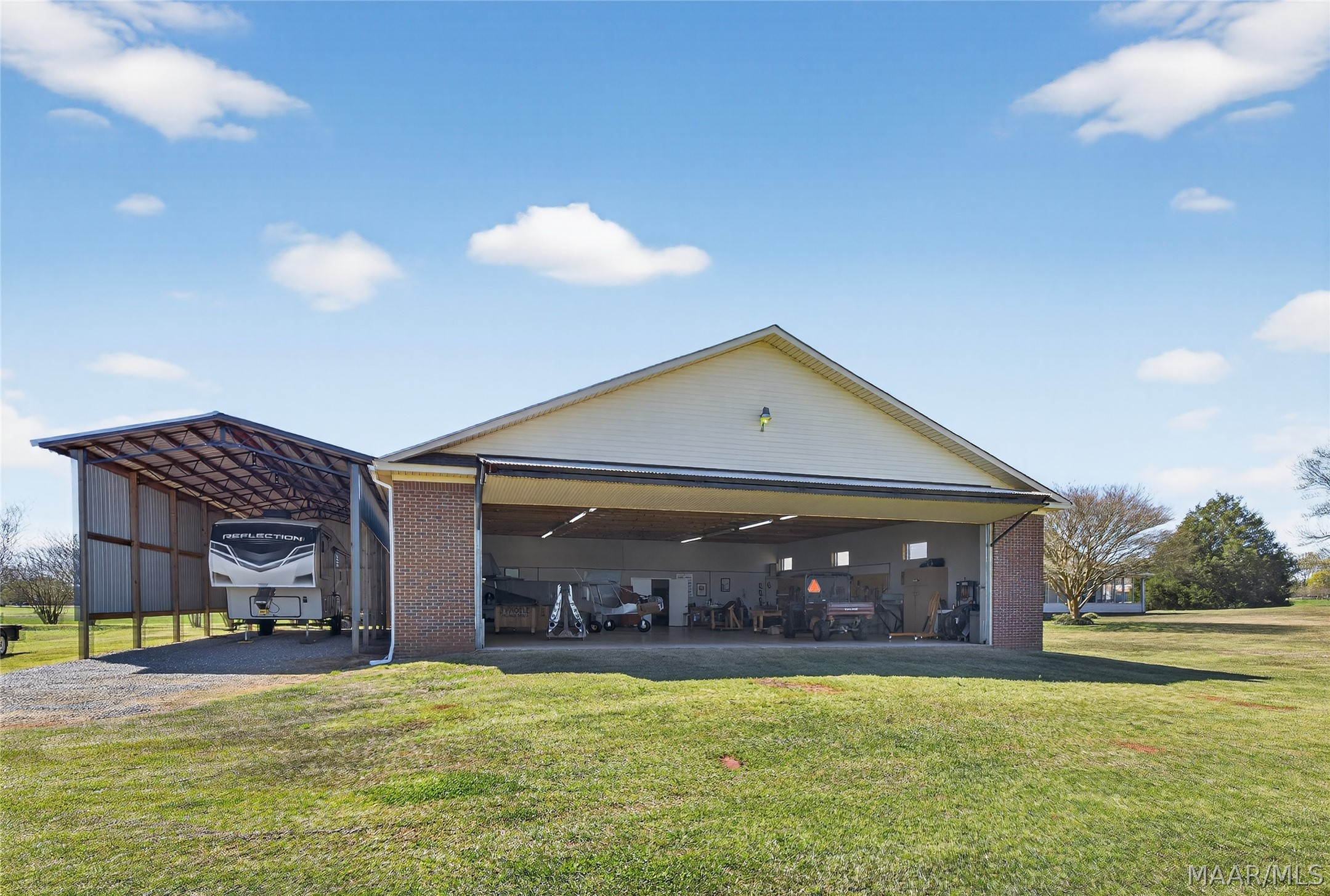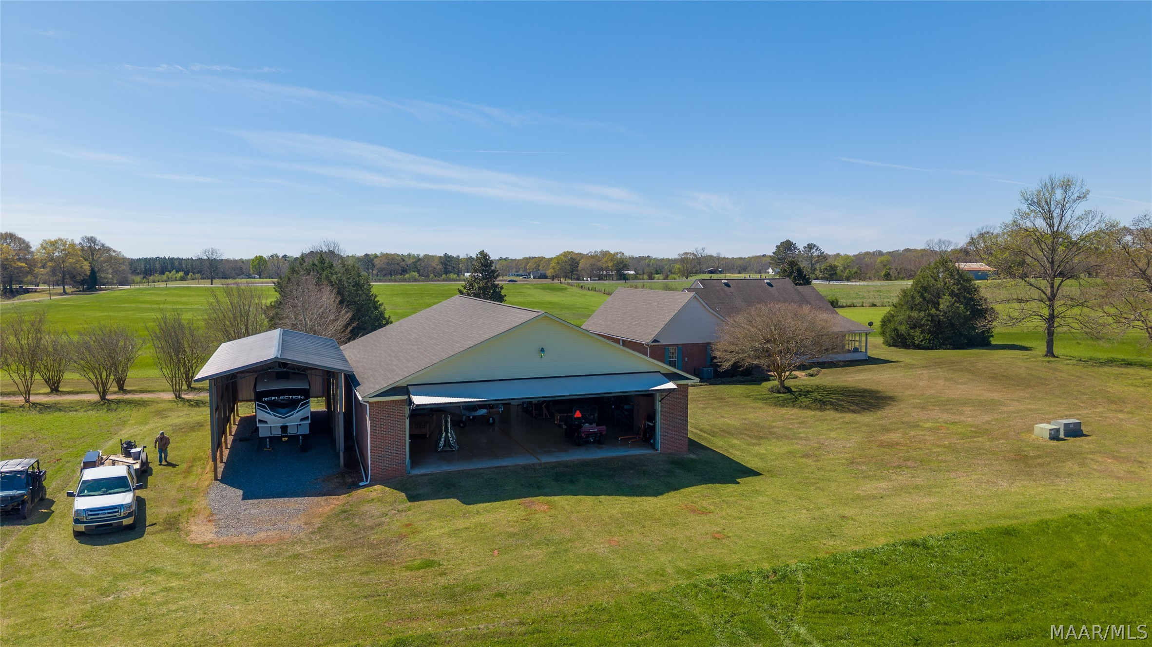 Welcome to 6819 Luverne Hwy, an exceptional 177± acre estate offering a rare fusion of refined country living, premier recreational amenities, and private aviation capability. This distinguished property provides an unmatched level of privacy, versatility, and long-term investment potential. The residence is a well-appointed brick home built in 1997, encompassing approximately 2,470 heated and cooled square feet. Designed for both comfort and functionality, it features three spacious bedrooms, two full baths, one half bath, a dedicated office, and an expansive upstairs bonus room ideal for additional living or entertaining space. The estate is further enhanced by impressive improvements, including a 50′ x 40′ shop, an approximately 3,000 square foot aircraft hangar, and an 18′ x 50′ lean-to. A private 2,000± foot airstrip is seamlessly integrated into the landscape, offering a rare opportunity for aviation enthusiasts or future airpark development. Utilities include county water with a well option, underground power, and partial fencing. The land showcases gently rolling topography with a curated blend of open pasture and managed timber. Approximately 102 acres are dedicated to productive hayfield, while 60 acres feature a well-established loblolly pine plantation, providing both immediate income and long-term value. Recreational offerings are equally impressive, including abundant deer and turkey hunting, a 200-yard shooting range, multiple pond sites, and an established trail system for seamless access throughout the property. This is more than a property—it is a legacy estate offering an unparalleled blend of luxury, recreation, and investment potential in the heart of Butler County.