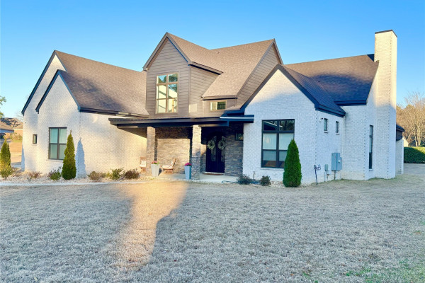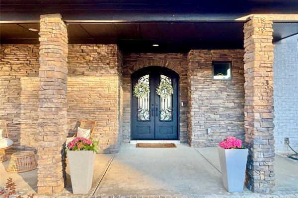 This stunning custom-built 4-bedroom, 3.5 bath, 1.5-story modern masterpiece blends luxury with everyday functionality. The dramatic front porch, with its stone columns, tall wood double front doors with elegant iron detailing invite you inside.
