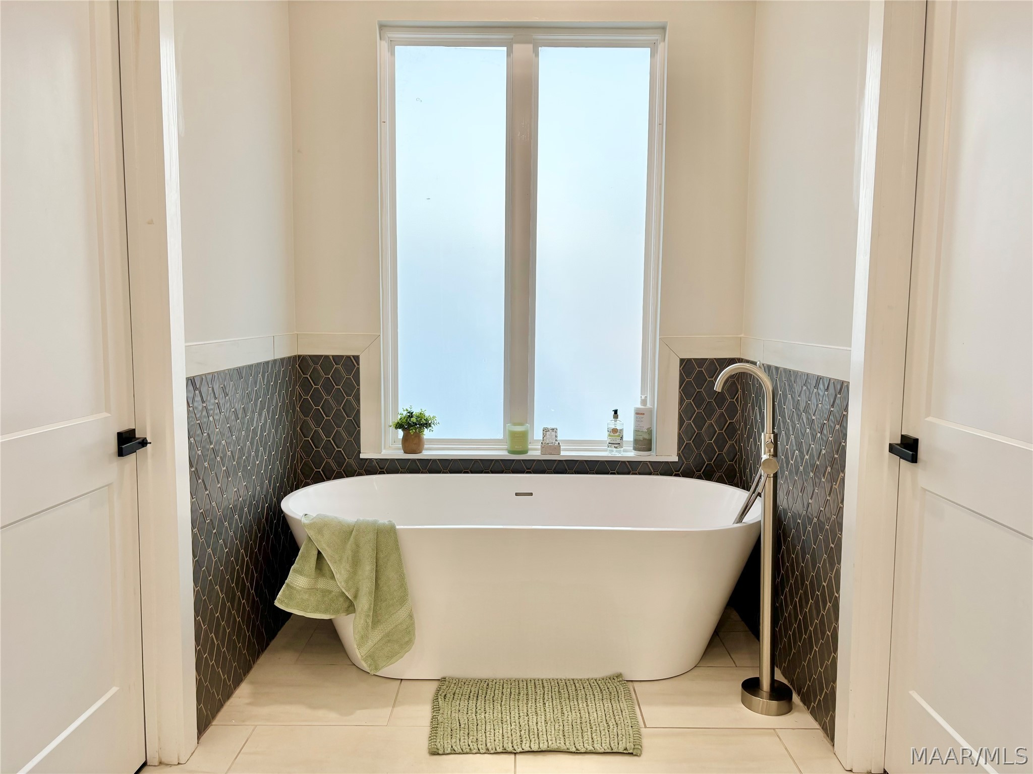 The primary suite is conveniently located downstairs, offering a private retreat with a glamorous and sleek bathroom featuring a freestanding deep soaking tub designed for relaxation. Upstairs additional bedrooms are generously sized.